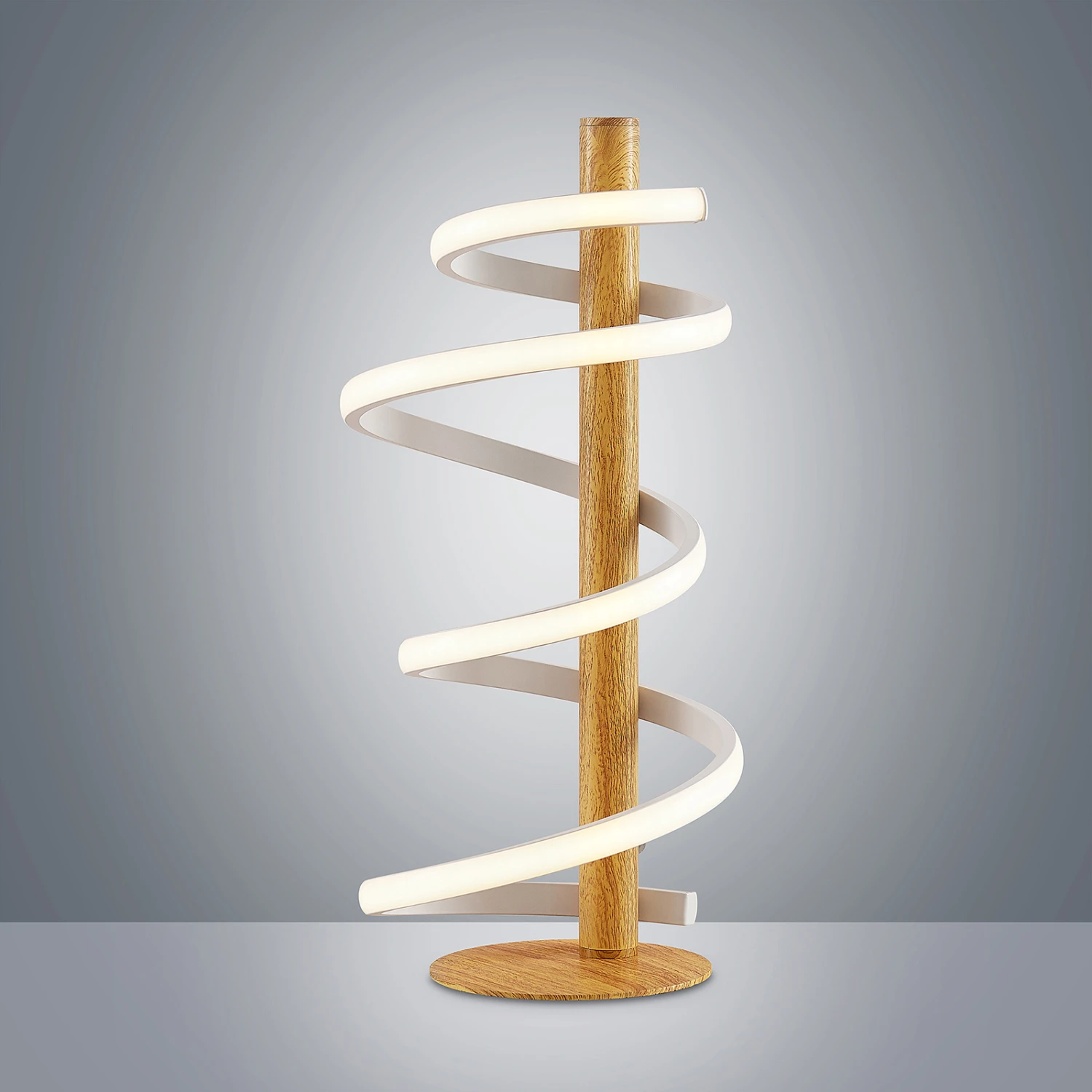 LED-Tischlampe Milora aus Metall in Eichenholzoptik, mit integrierter Drei-Stufen-Dimmtechnik