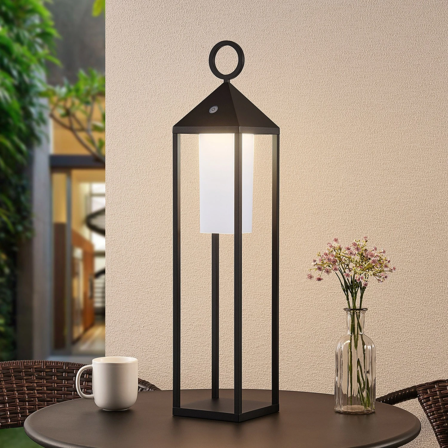 Schwarze LED-Laterne zur Outdoor-Dekoration mit Touchdim-Funktion