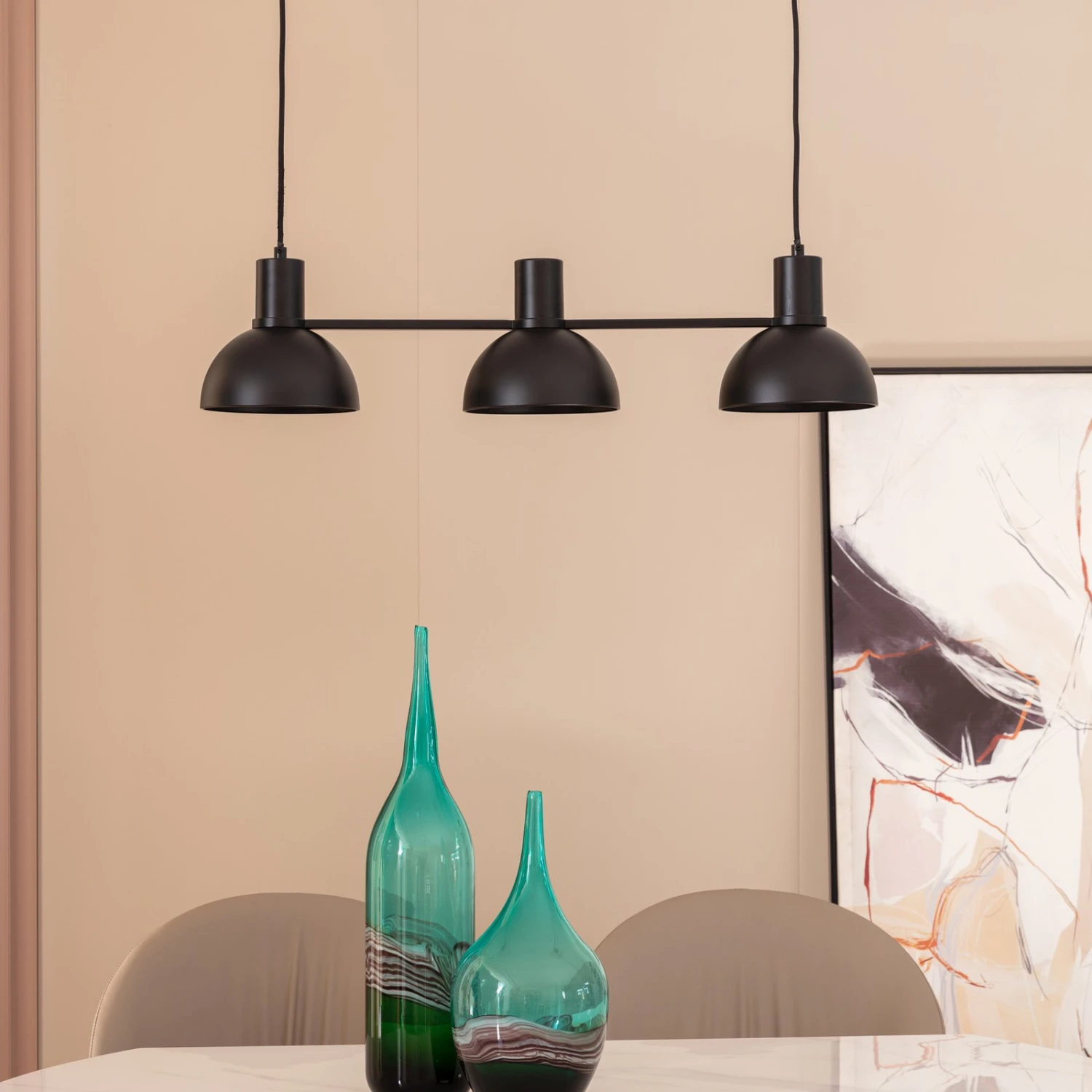 Dreiflammige Balkenpendellampe Mostrid mit schwarzen Eisenschirmen – ideal als Essplatzbeleuchtung