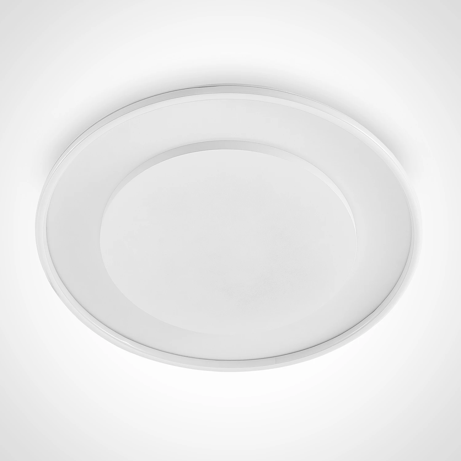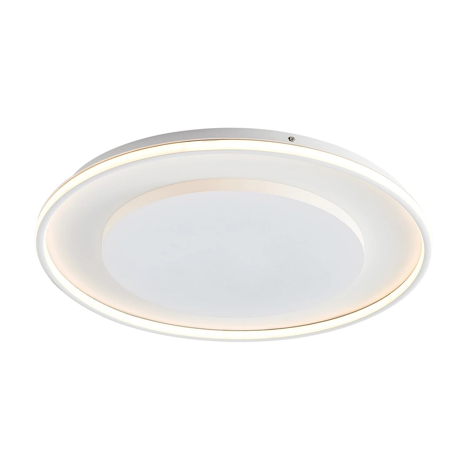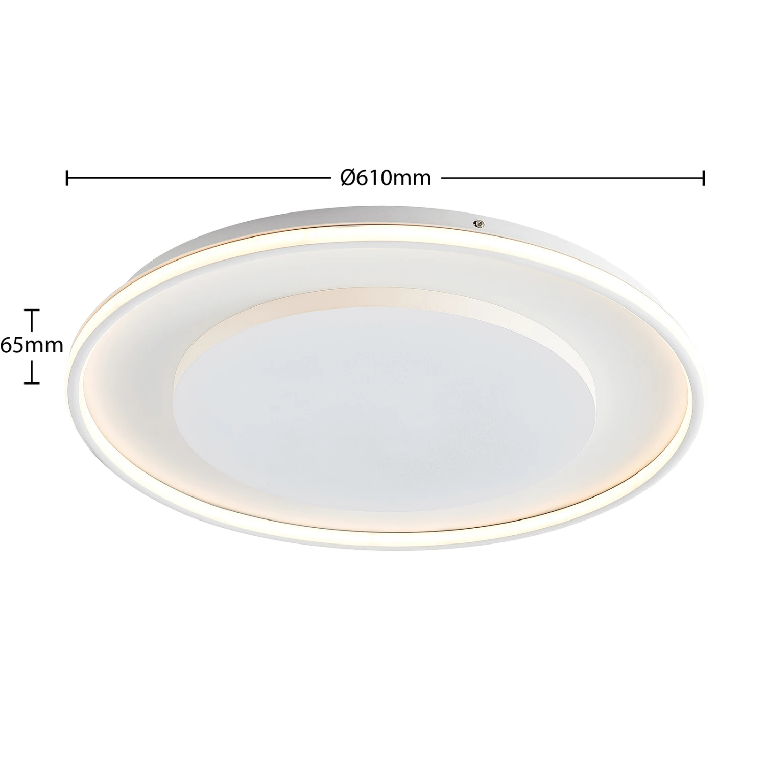 Die große LED-Deckenleuchte Murna mit einem Durchmesser von mehr als 60 Zentimetern ist hervorragend zur Grundbeleuchtung großer Räume geeignet und bietet Flexibilität in Sachen Beleuchtung, und das, ohne die zusätzliche Installation eines Dimmers.