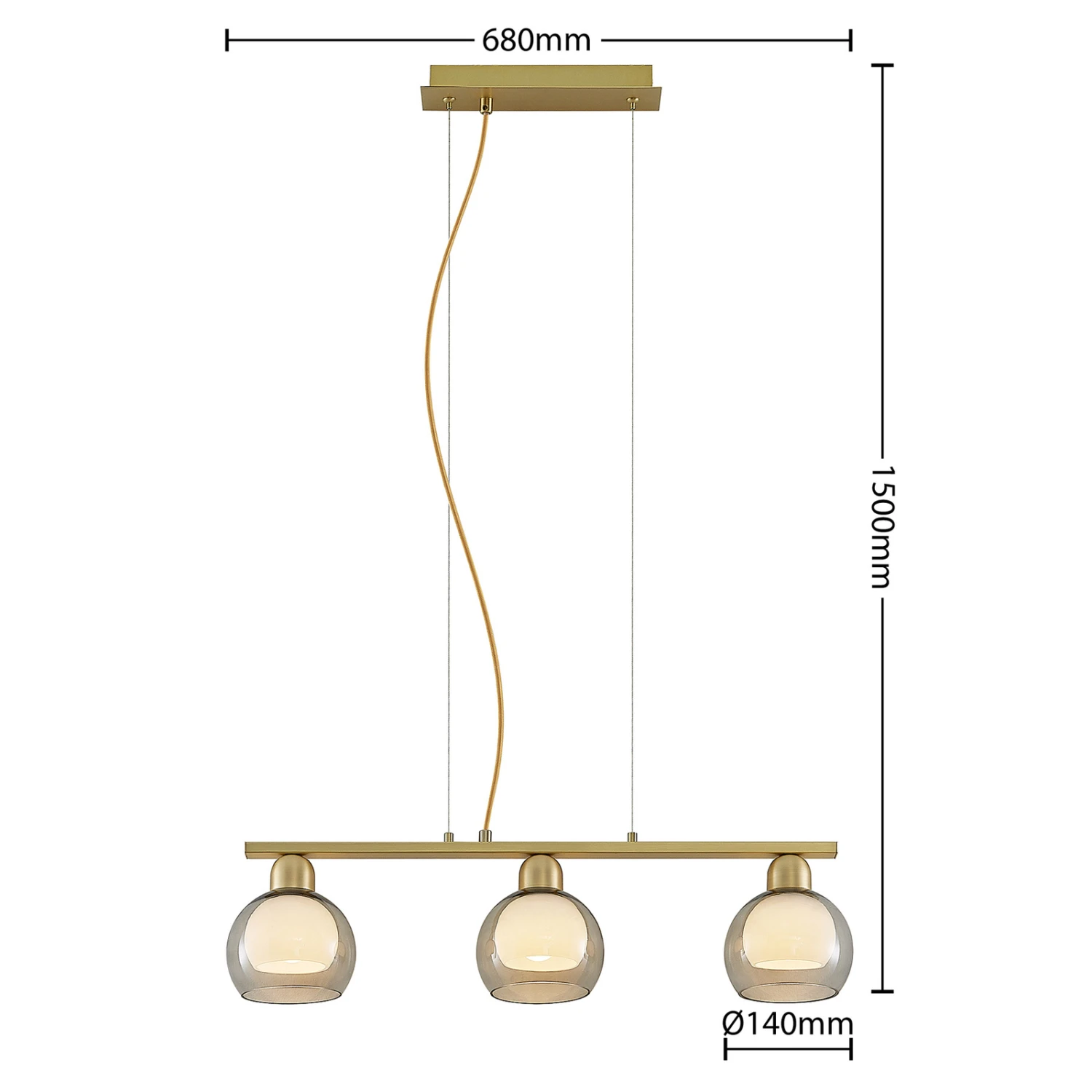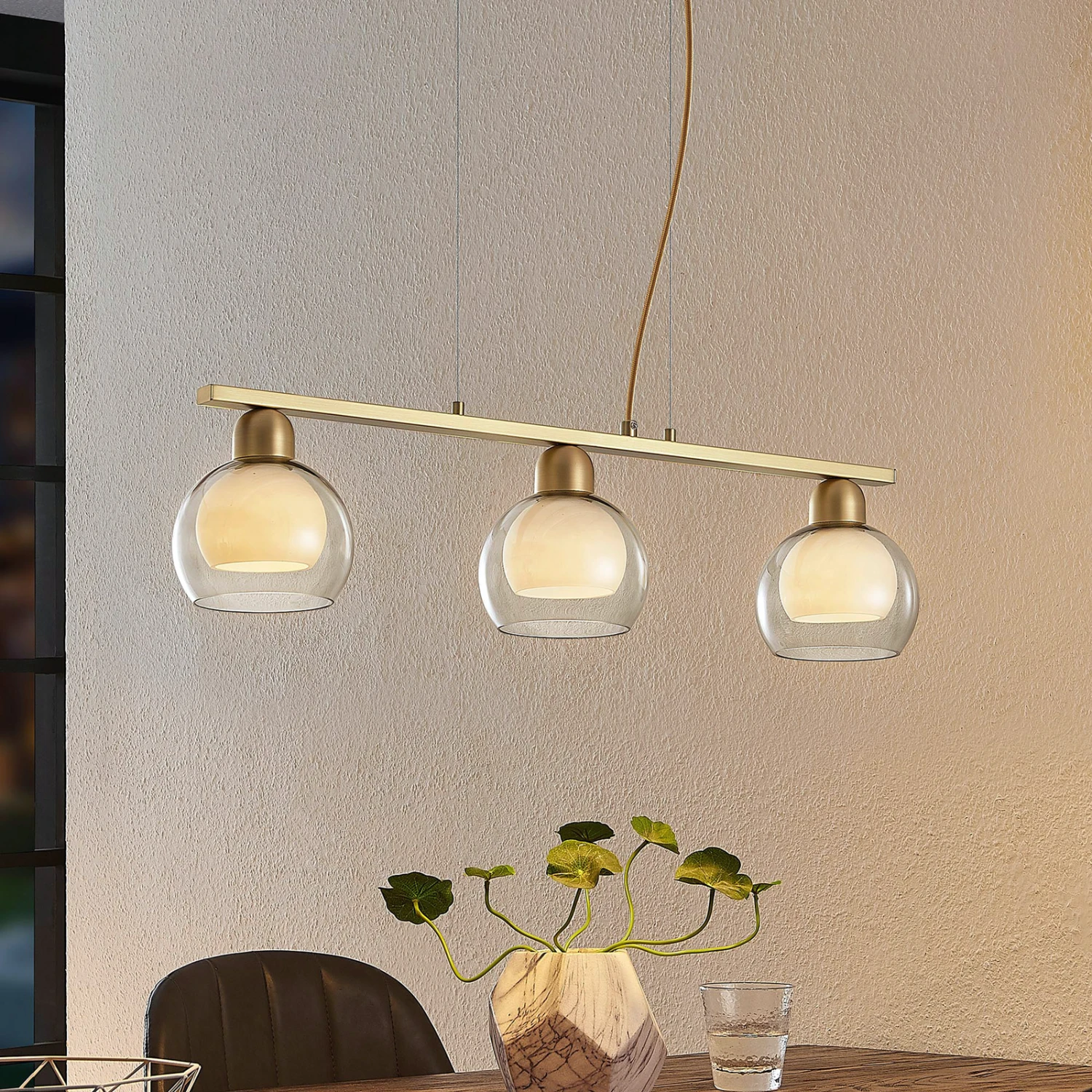 Dreiflammige Hängeleuchte Mylah aus Eisen und Glas in attraktivem Vintage-Look