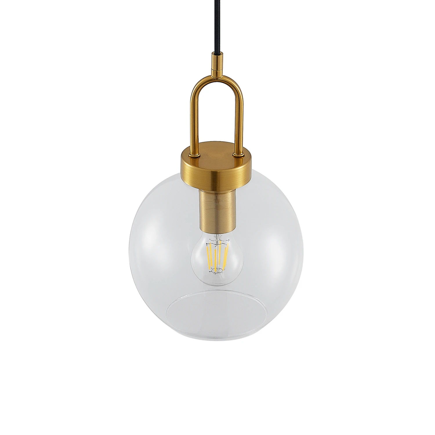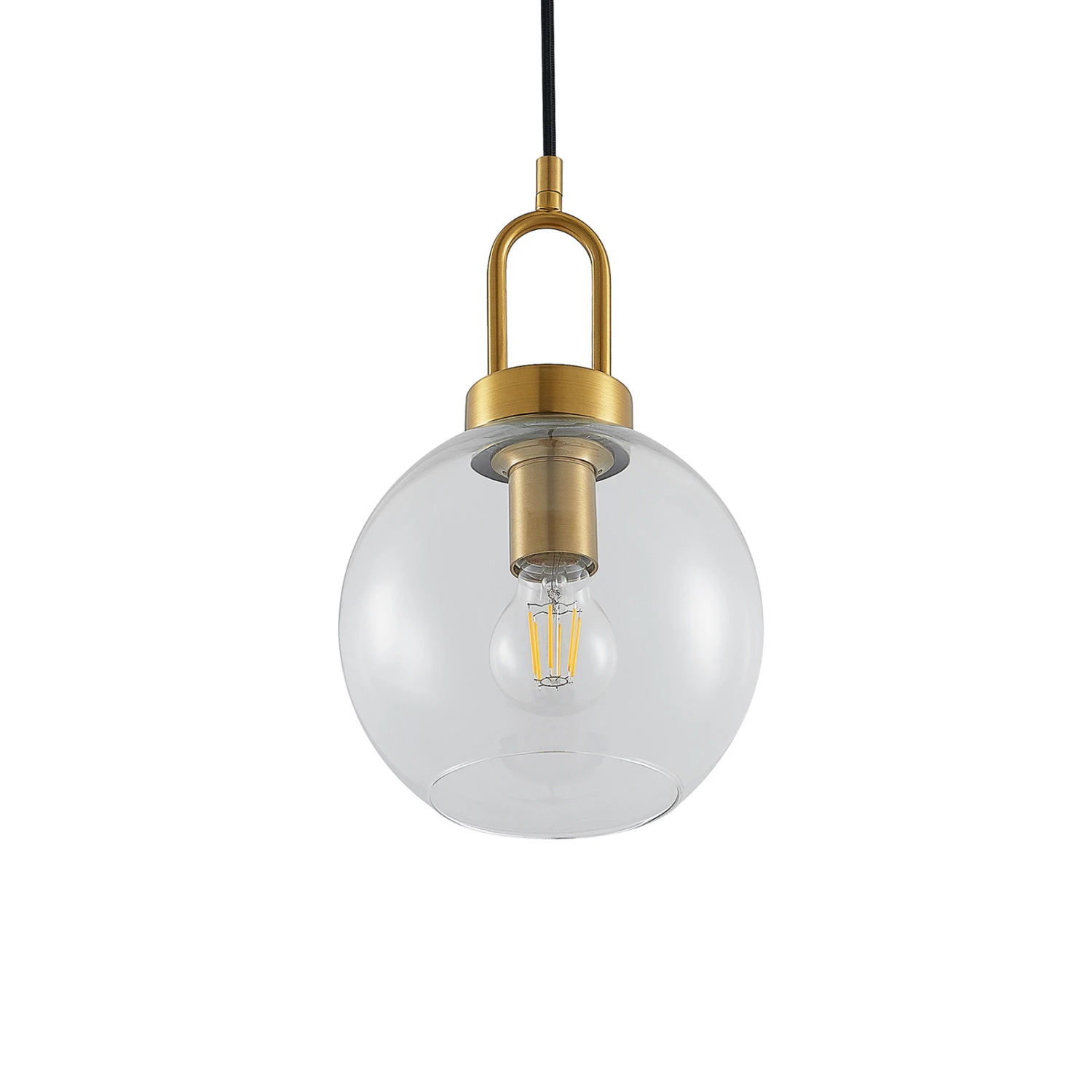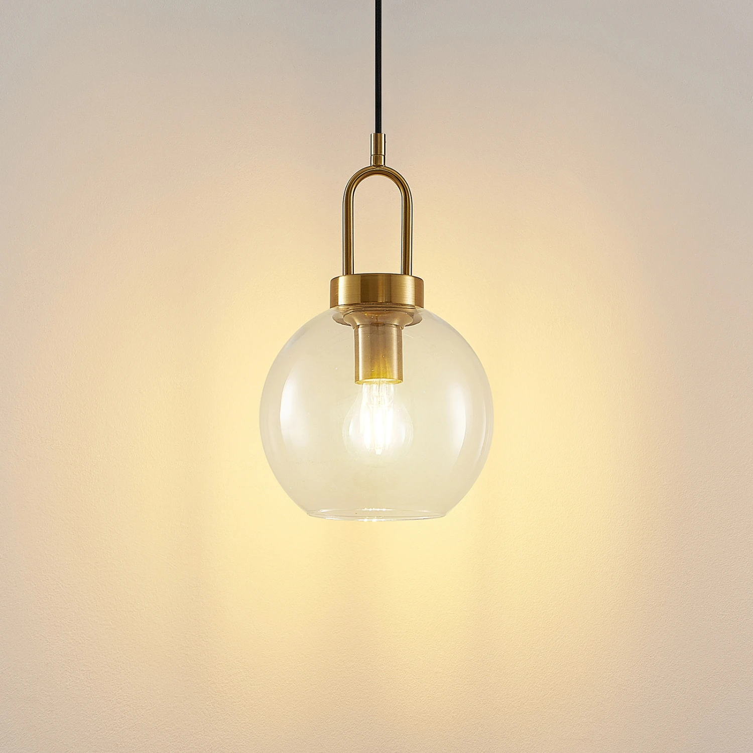 Messingfarbene Hängeleuchte Nalian mit einem Kugelschirm aus Glas