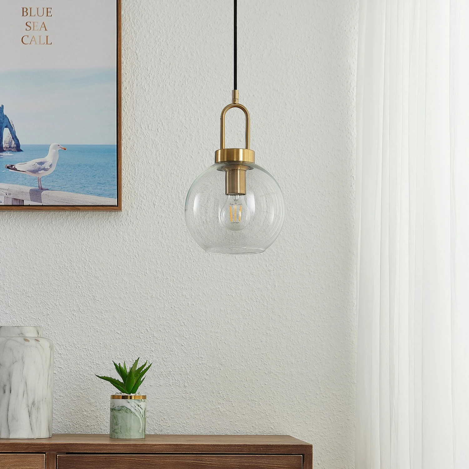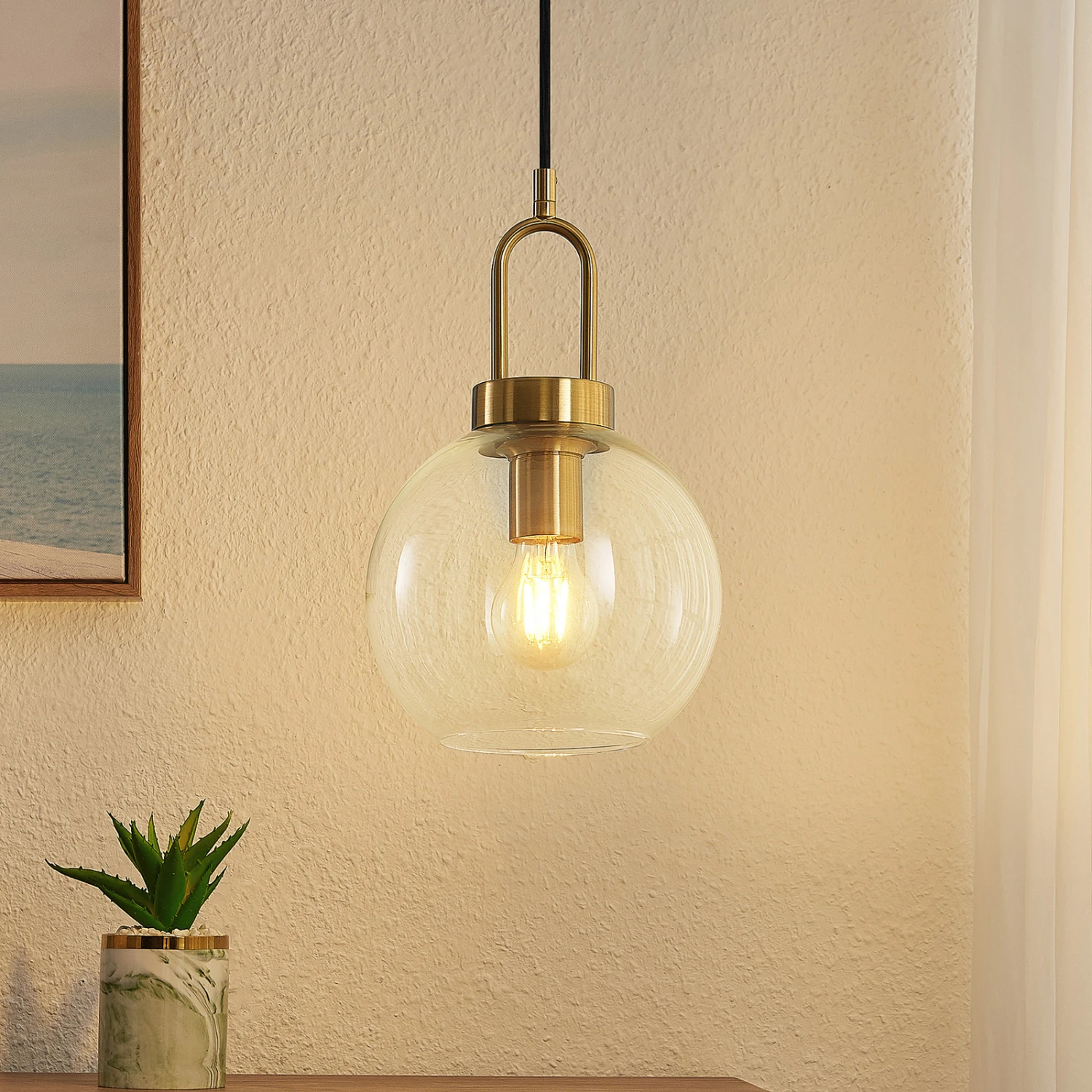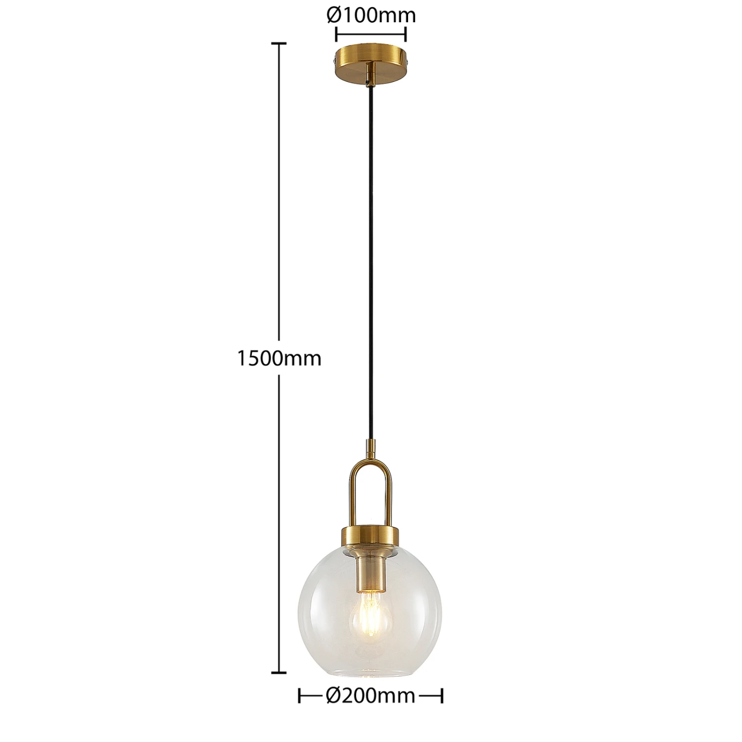 Messingfarbene Hängeleuchte Nalian mit einem Kugelschirm aus Glas