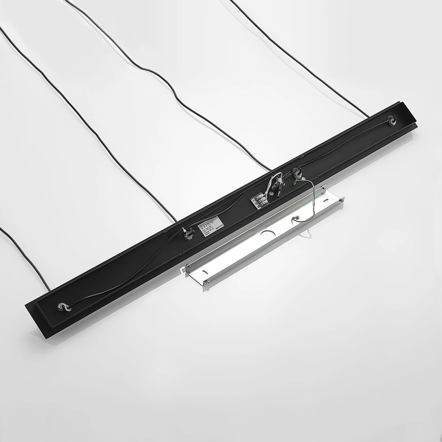 Naoh überzeugt mit einem sehr modernen Design und macht sich hervorragend als Beleuchtung über einem Esstisch. Die längliche Form und das nach unten gerichtete Licht sorgen für eine angemessene Tischausleuchtung, ohne dass es zu lästigen Blendungen kommt. Stattdessen ist das Licht sanft und gleichmäßig, da es vom Betrachter nur indirekt wahrgenommen wird, ohne dass man die Lichtquelle direkt sieht. Die schwarze Oberflächengestaltung passt zu modernem Interieur und die kupferfarbenen Details der zweilagigen Kegelschirme beeinflussen nicht nur die Optik mit einer individuellen Note, sondern tragen auch zu einer wärmeren Lichtwirkung bei. Sehr schön für moderne, stilvolle Einrichtungen!