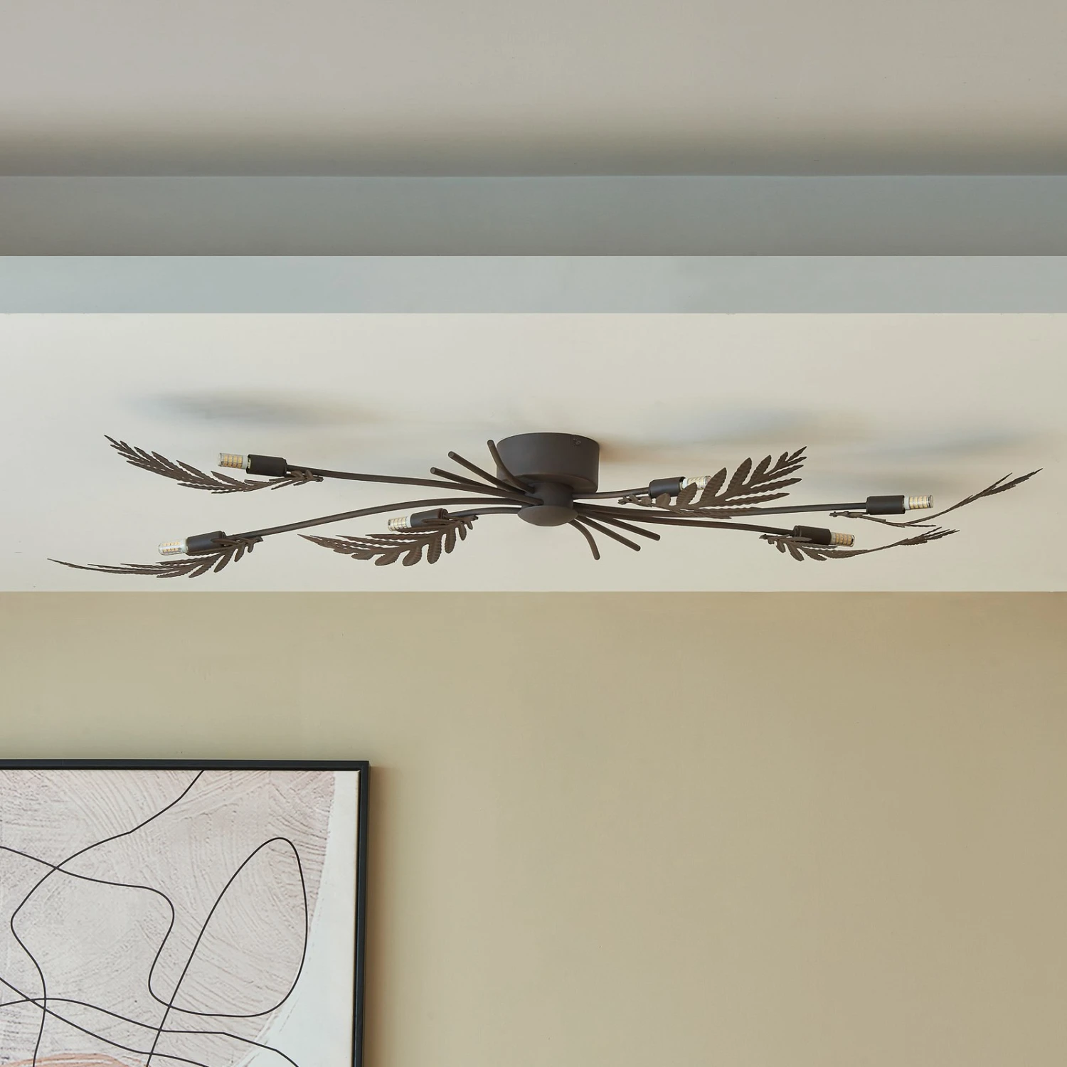 Dekorative Deckenlampe Nelian mit hübschen Elementen in Blattoptik, rostfarben