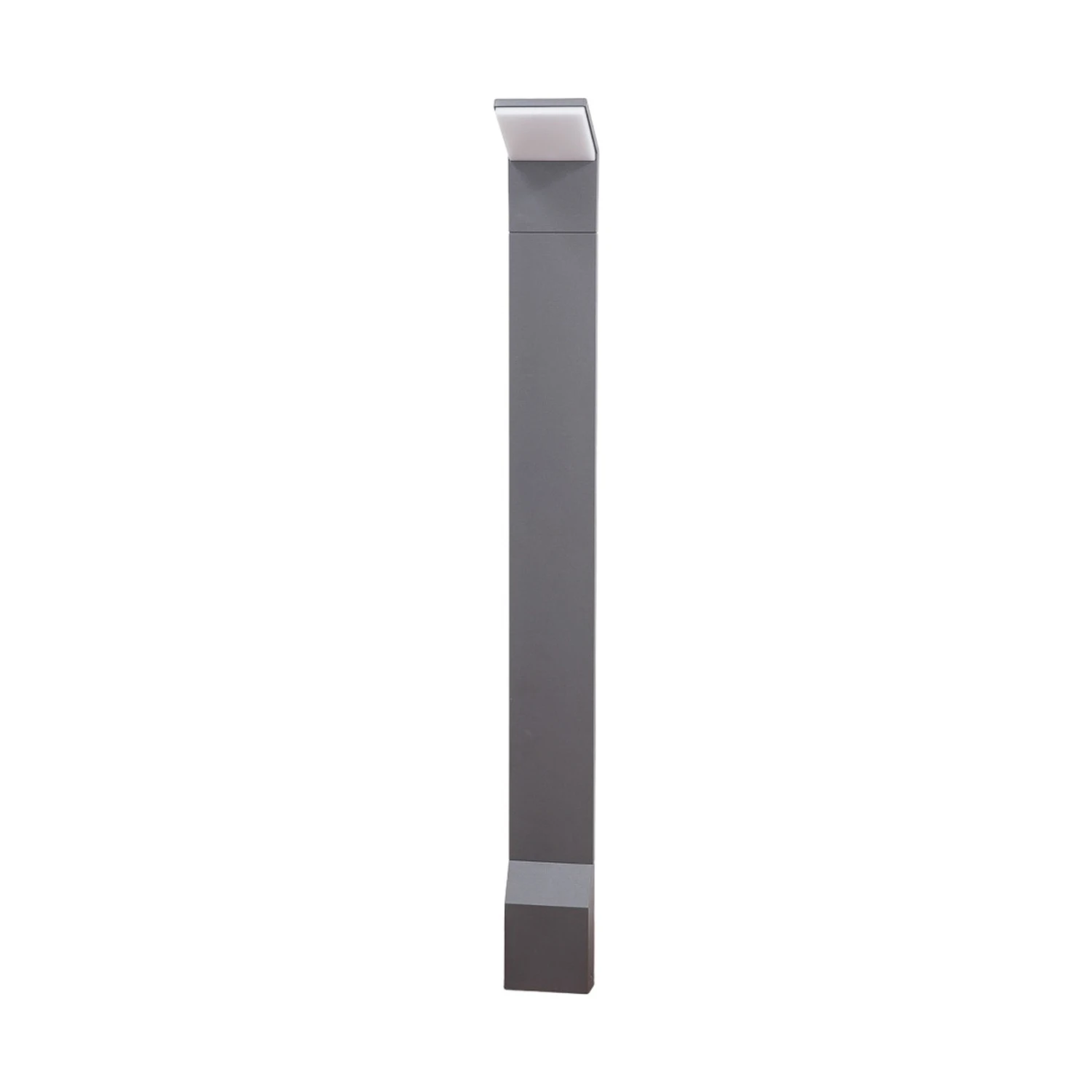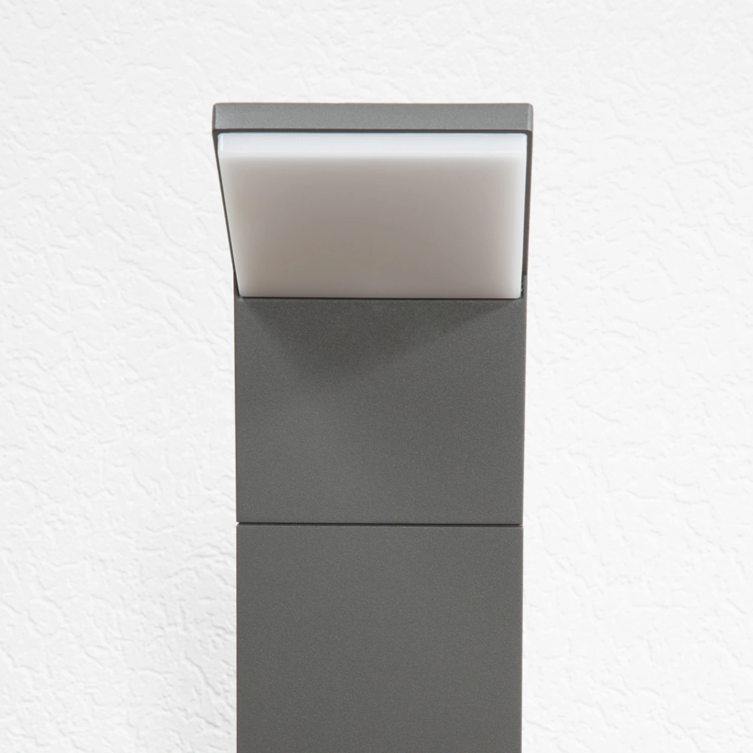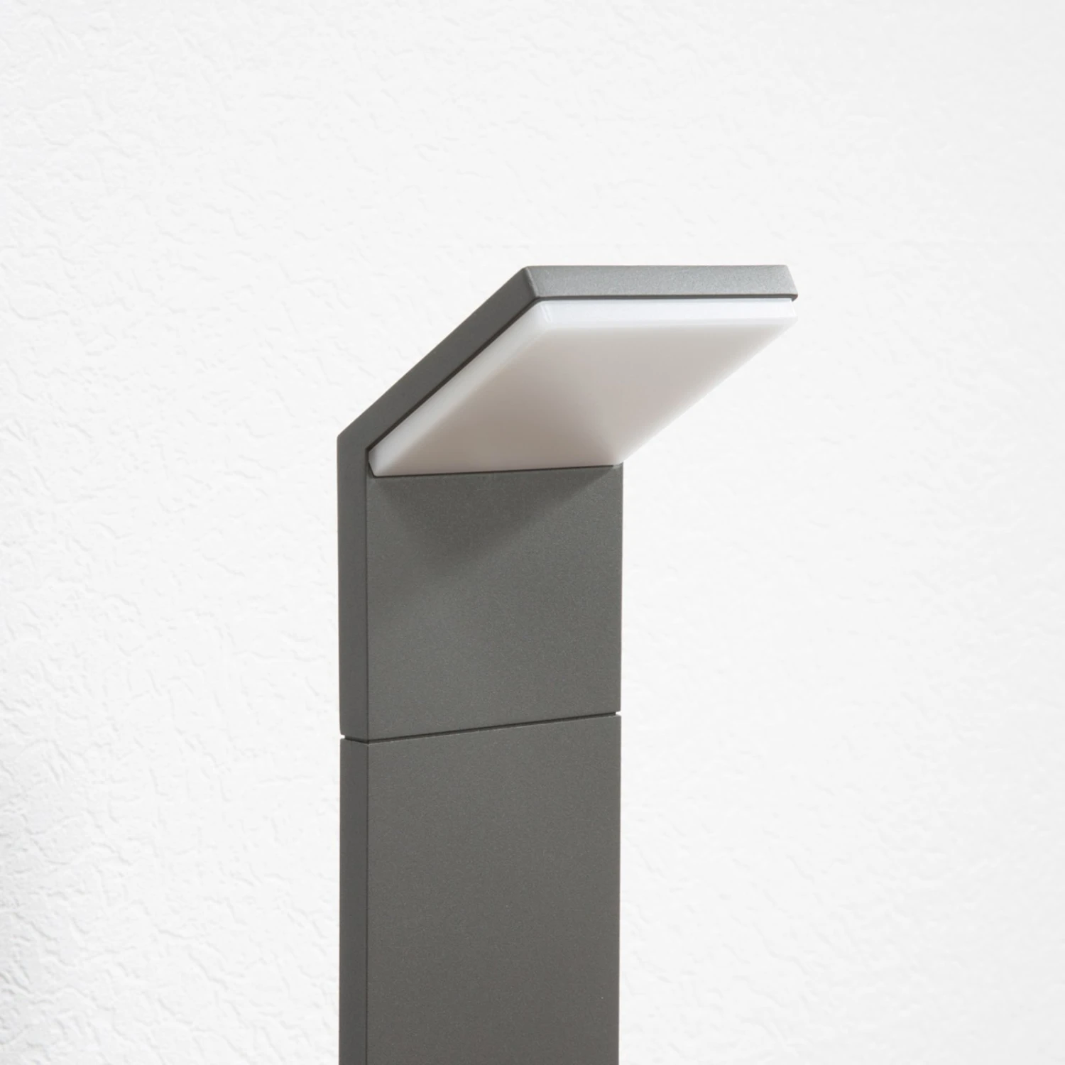 Der Lichtaustritt erfolgt bei dieser LED-betriebenen Wegeleuchte nach unten, denn der geradlinige Leuchtkopf ist Richtung Boden geneigt. Er ergänzt das ebenfalls rechteckige Gestell optimal und wird an der Unterseite von einem weißen Kunststoffdiffusor bedeckt, der eine gleichmäßige und blendfreie Lichtwirkung erzeugt. Die integrierten, warmweiß scheinenden LEDs sind ein Markenprodukt von Epistar und zeichnen sich nicht nur durch eine lange Lebensdauer, sondern auch durch eine hohe Energieeffizienz aus, was einem modernen Umweltbewusstsein sehr entgegenkommt.