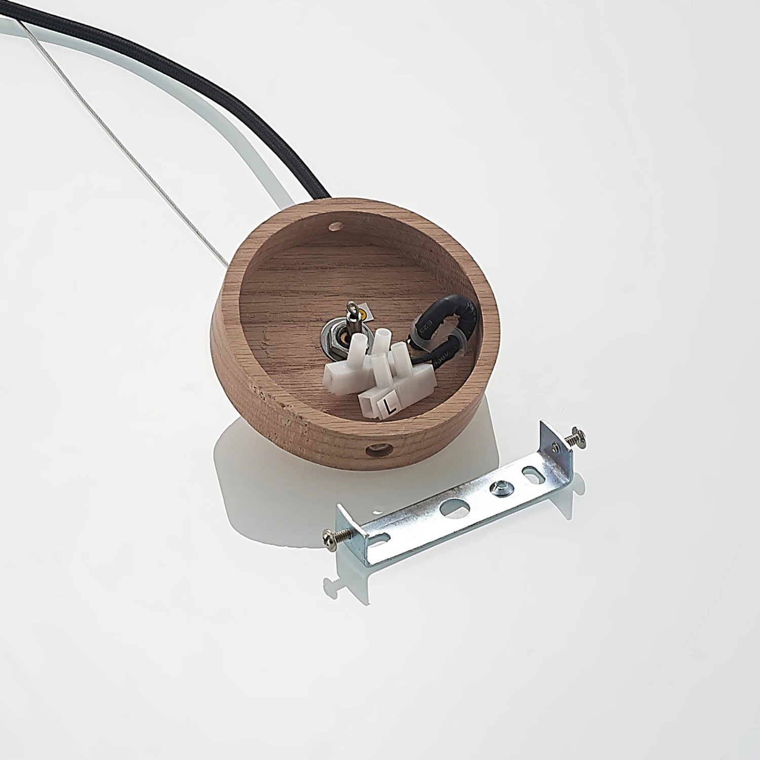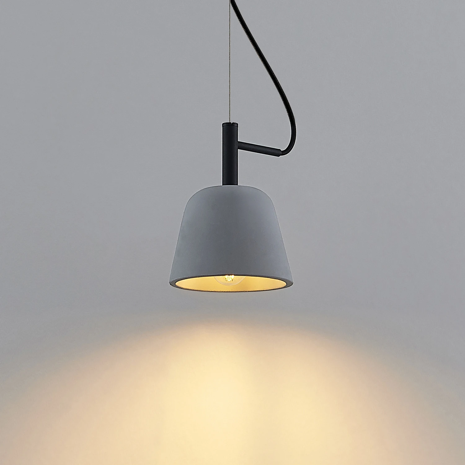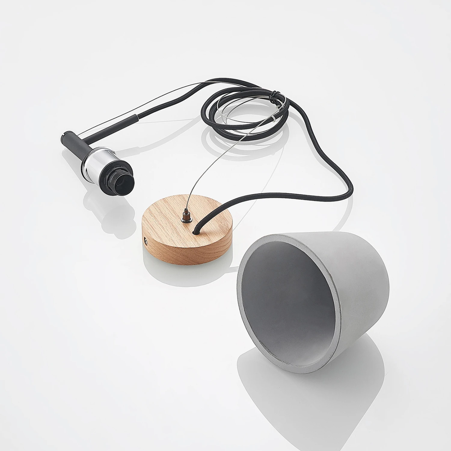 Die Pendelleuchte Otavis überrascht mit ihrem schlichten und doch sehr ansprechenden Design. Sie eignet sich hervorragend dafür, einen Esszimmertisch auszuleuchten und kann zudem über einer Küchentheke angebracht werden. Auch die Montage zu mehreren Leuchten wäre optisch ein richtiger Eyecatcher. Den besonderen Look verdankt diese Leuchte ihrer kleinen Deckenhalterung aus Eichenholz, dem nach unten geöffneten Leuchtenschirm aus Beton und dem auffälligen, dunklen Kabel, der locker von der Decke zu hängen scheint und eine erfrischende Leichtigkeit in das Design bringt.
