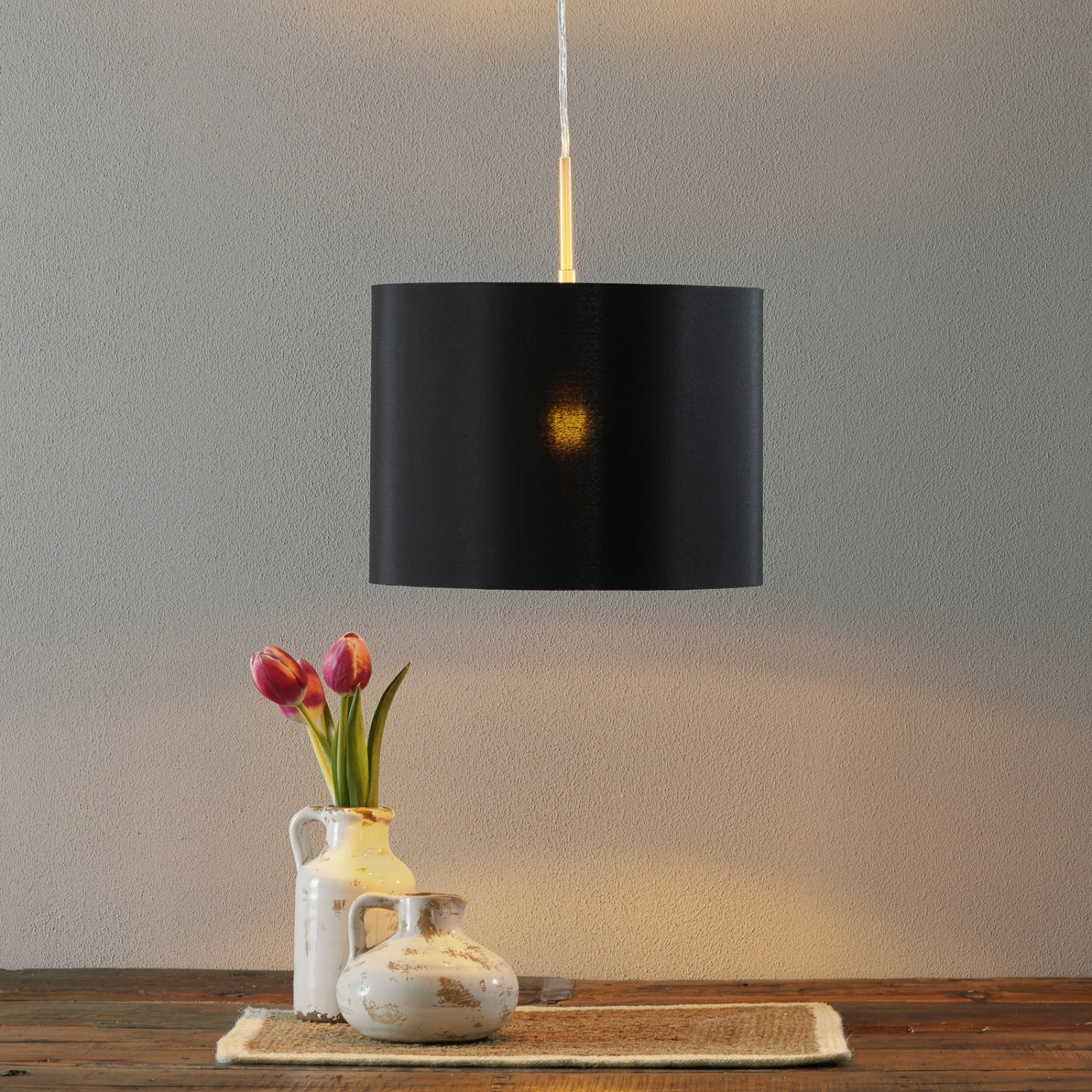 Wo auch immer die Hängeleuchte Patrik angebracht wird, sorgt sie für ein stilvolles Ambiente und gemütliche Momente. Der Textilschirm ist in einer klassischen Trommelform gestaltet und an beiden Enden geöffnet. Dadurch wird das Licht vornehmlich nach unten geleitet, aber auch nach oben hin entsteht ein sanfter Lichtschein. Das zurückhaltende Design ermöglicht eine Kombination mit unzähligen Raumkonzepten und macht Patrik zu einem vielseitig einsetzbaren Beleuchtungsobjekt.