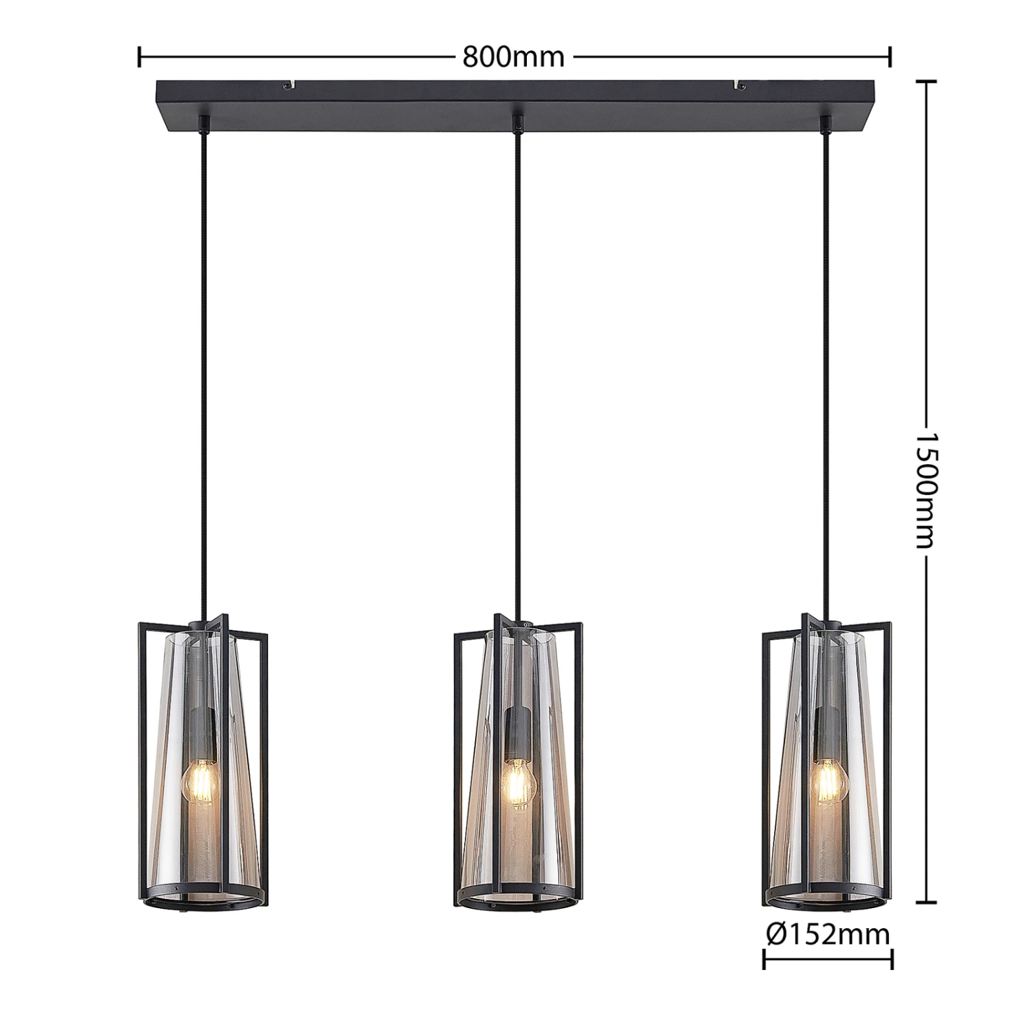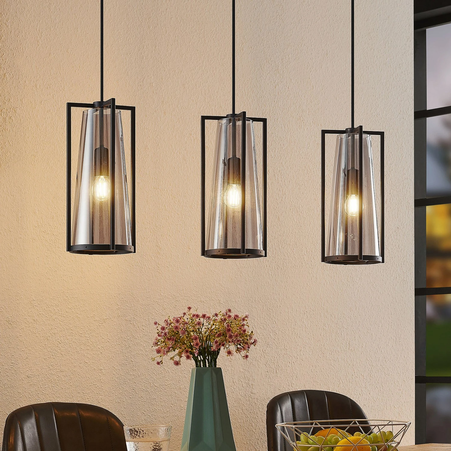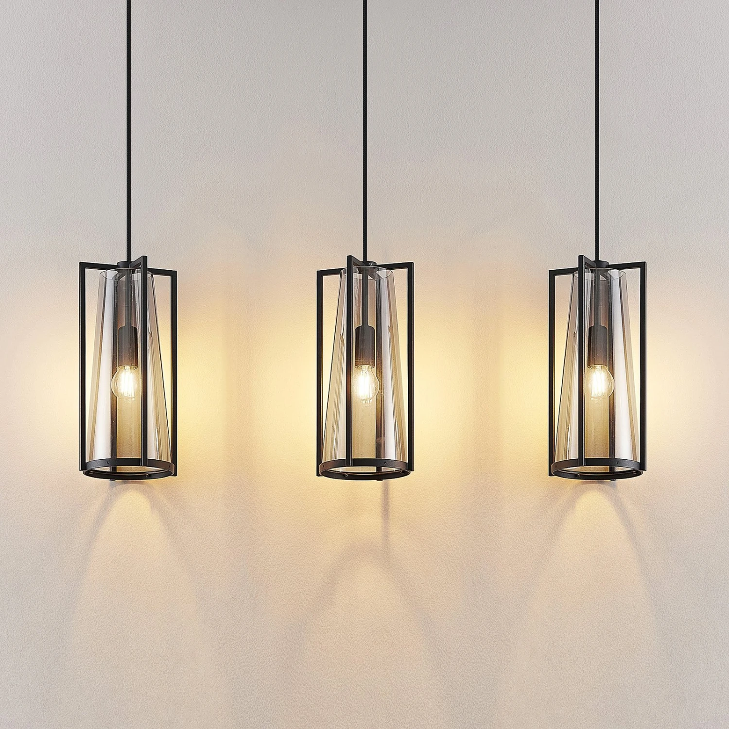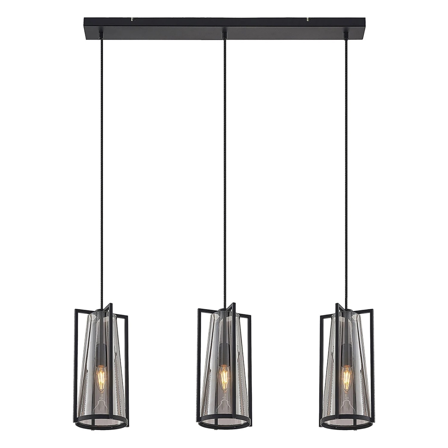 Längliche, dreiflammige Rauchglaspendellampe Rufina mit exklusivem Design
