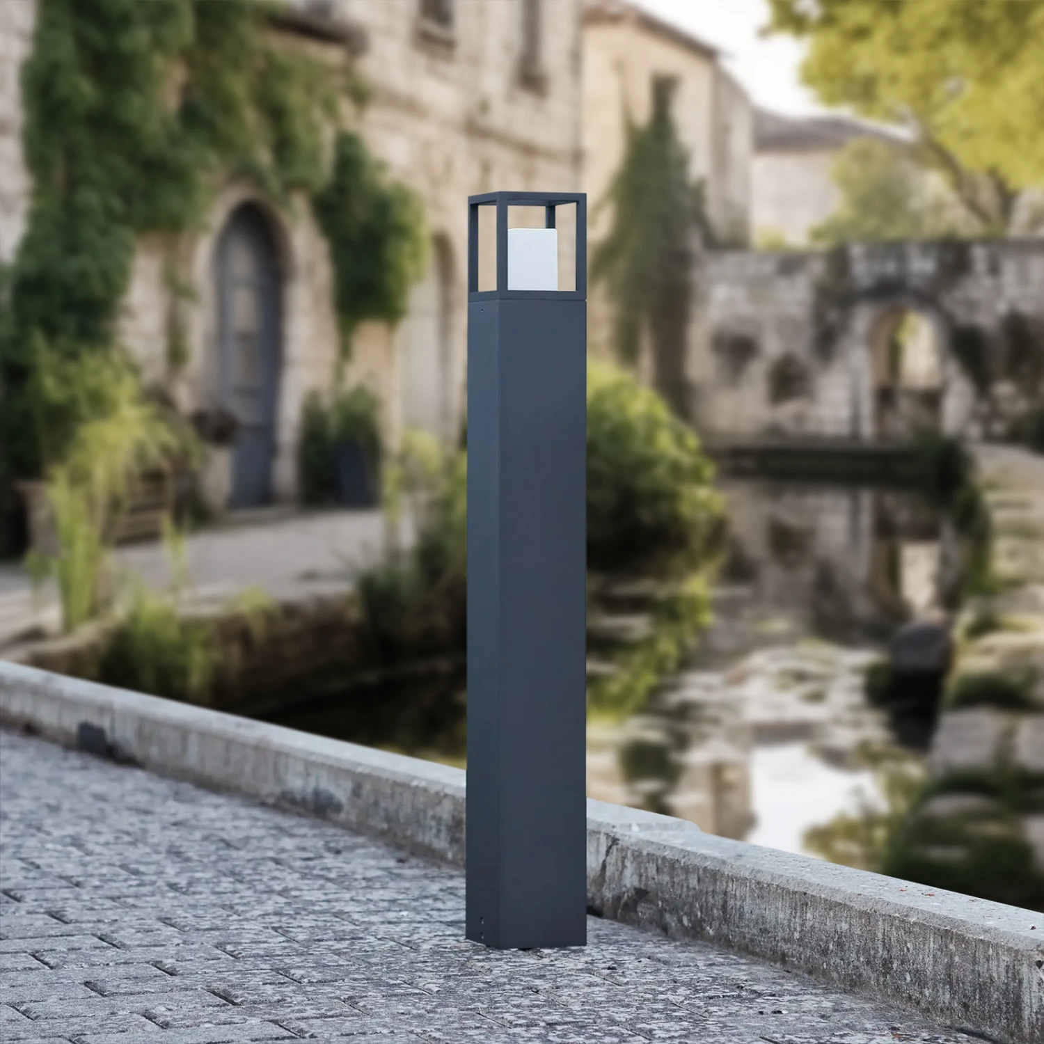 Rumina ist eine moderne Lichtlösung, die sich mit ihrem gradlinigen Design in beinahe jede Umgebung einfügen lässt, ohne sofort aufzufallen. Das eckige Gehäuse aus Aluminium wurde mit einem dunkelgrauen Finish bearbeitet und wirkt deshalb ebenso solide wie elegant. Die kubische Leuchtschirmabdeckung dient als Diffusor und lässt das Licht homogen und sanft nach außen abstrahlen, ohne einen unerwünschten Blendeffekt zu verursachen. Das warmweiße Licht wirkt einladend und kommt sehr schön entlang eines Gartenweges zur Geltung, sodass die Gäste sich noch vor dem Hauseingang willkommen fühlen.
