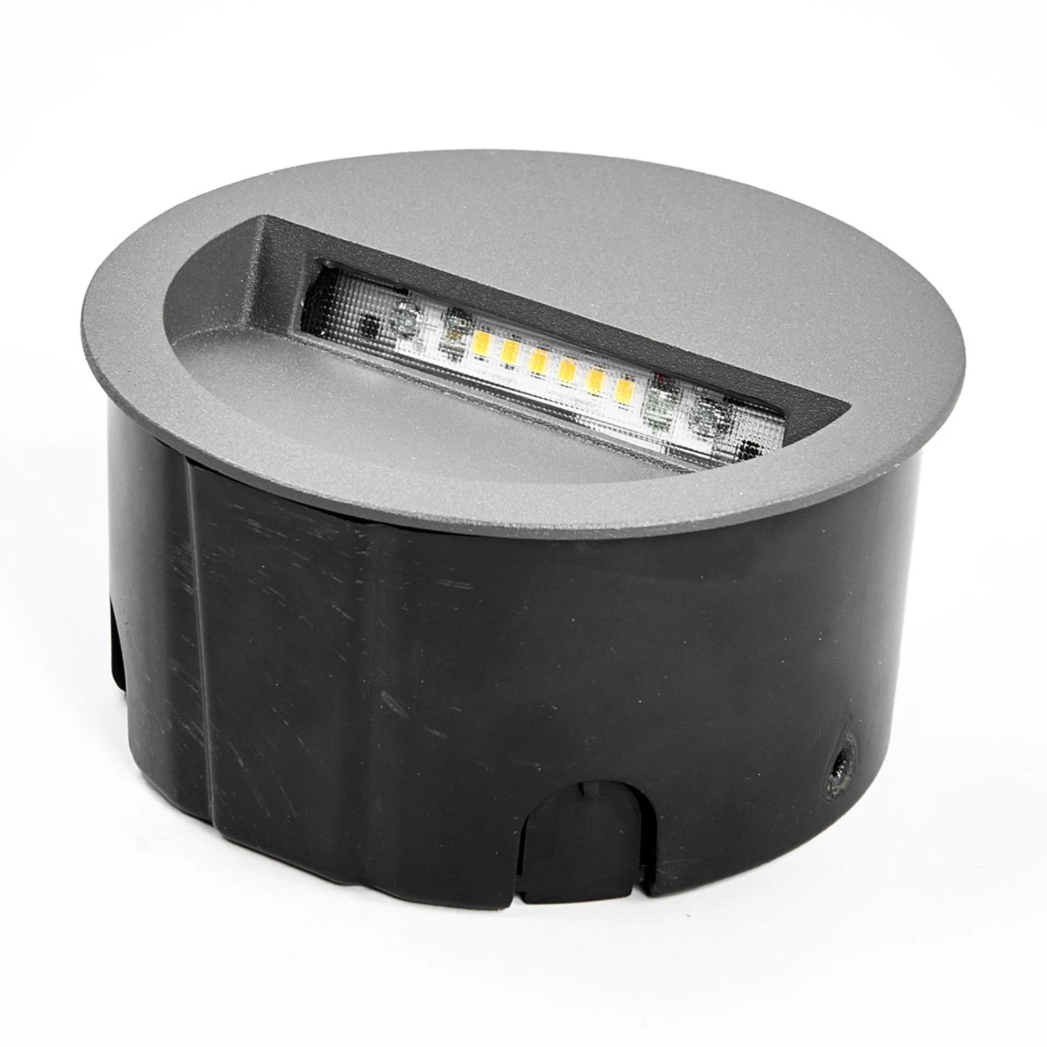 Kreisrunde LED-Wandeinbauleuchte Loya mit dunkelgrauer Oberfläche