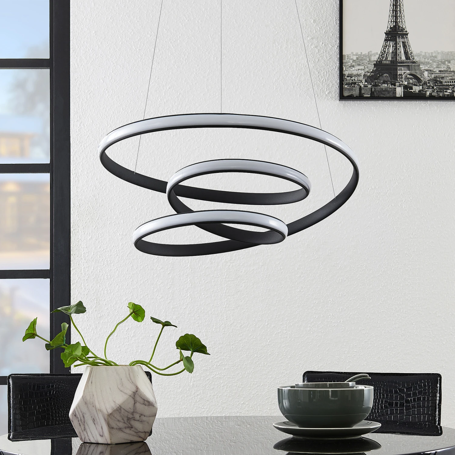 Das moderne und leicht verspielte Aussehen der LED-Hängeleuchte Sakina lässt sich mühelos in verschiedenste Einrichtungsstile integrieren. Sie setzt attraktive Akzente an Wohnungsdecken und verwandelt jeden Raum in etwas ganz Besonderes.