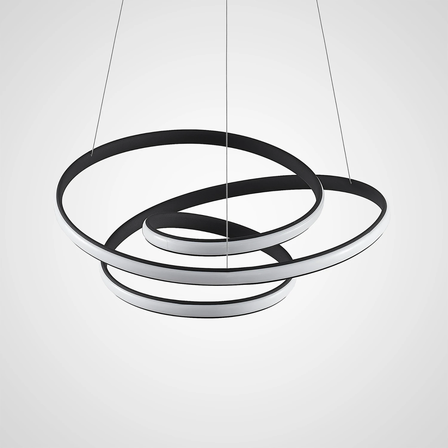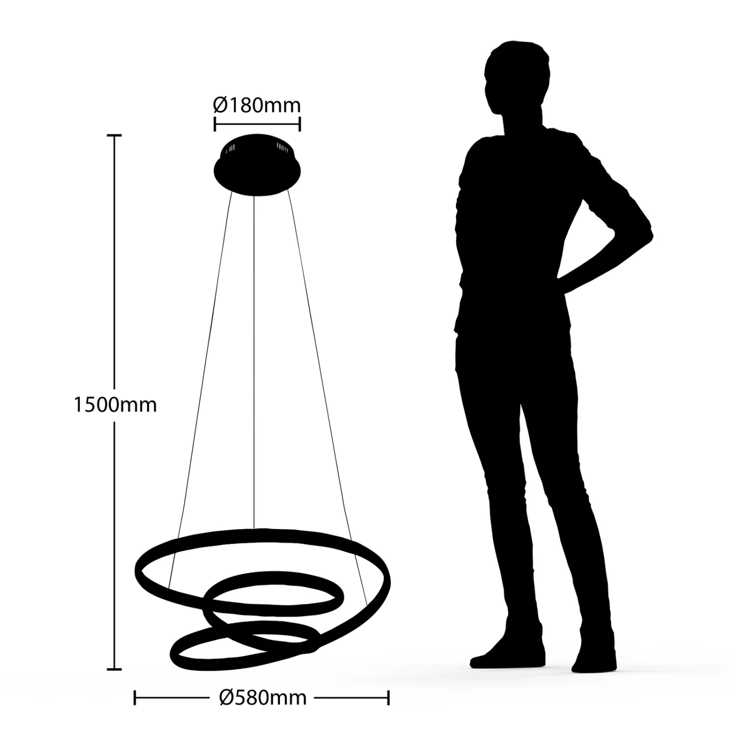 Die LED-Hängelampe Sakina ist ein modischer Einrichtungsgegenstand und ein Lichtspender mit praktischen Funktionen. Ihr Leuchtenkörper besteht aus Eisen und Aluminium und ist in Sandschwarz gehalten. Ihre auffallende Form besteht aus einer länglichen Strebe, welche schwungvoll um sich selbst kreist. Entlang dieser Strebe sind LEDs fest verbaut und generieren ein warmweißes Licht, welches durch die besondere Form attraktiv im Raum verteilt wird.