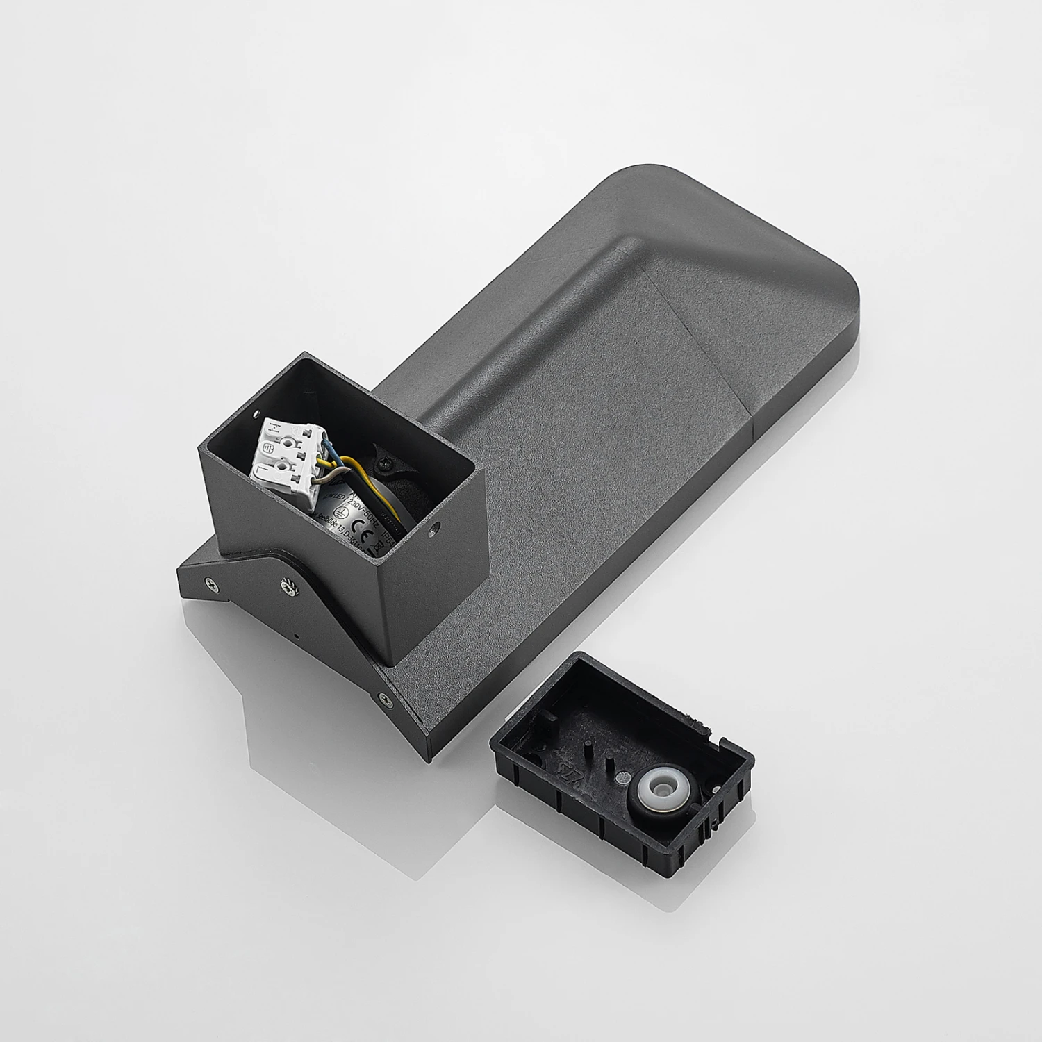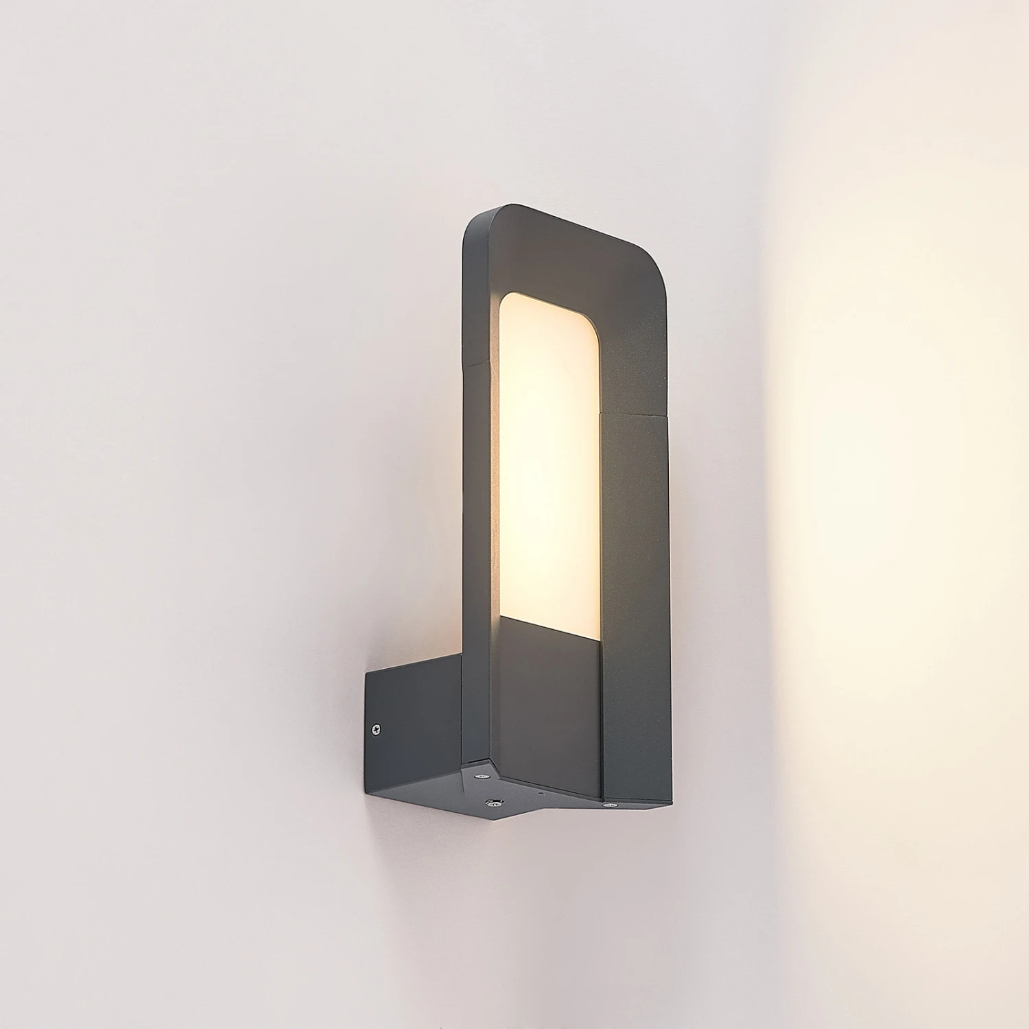 Die Optik und das Design der LED-Außenwandleuchte Secunda sind modern und bieten einen besonderen Blickfang. Der aus dunkelgrauem Aluminiumdruckguss bestehende Leuchtenkörper besitzt einen opalweißen Kunststoffdiffusor, der fast an ein LED-Panel erinnert. Die dahinter verbauten LEDs sorgen mit einem warmweißen und gleichmäßigen Lichtschein für eine blendfreie Beleuchtung, zum Beispiel im Bereich des Hauseingangs oder als Fassadenbeleuchtung.