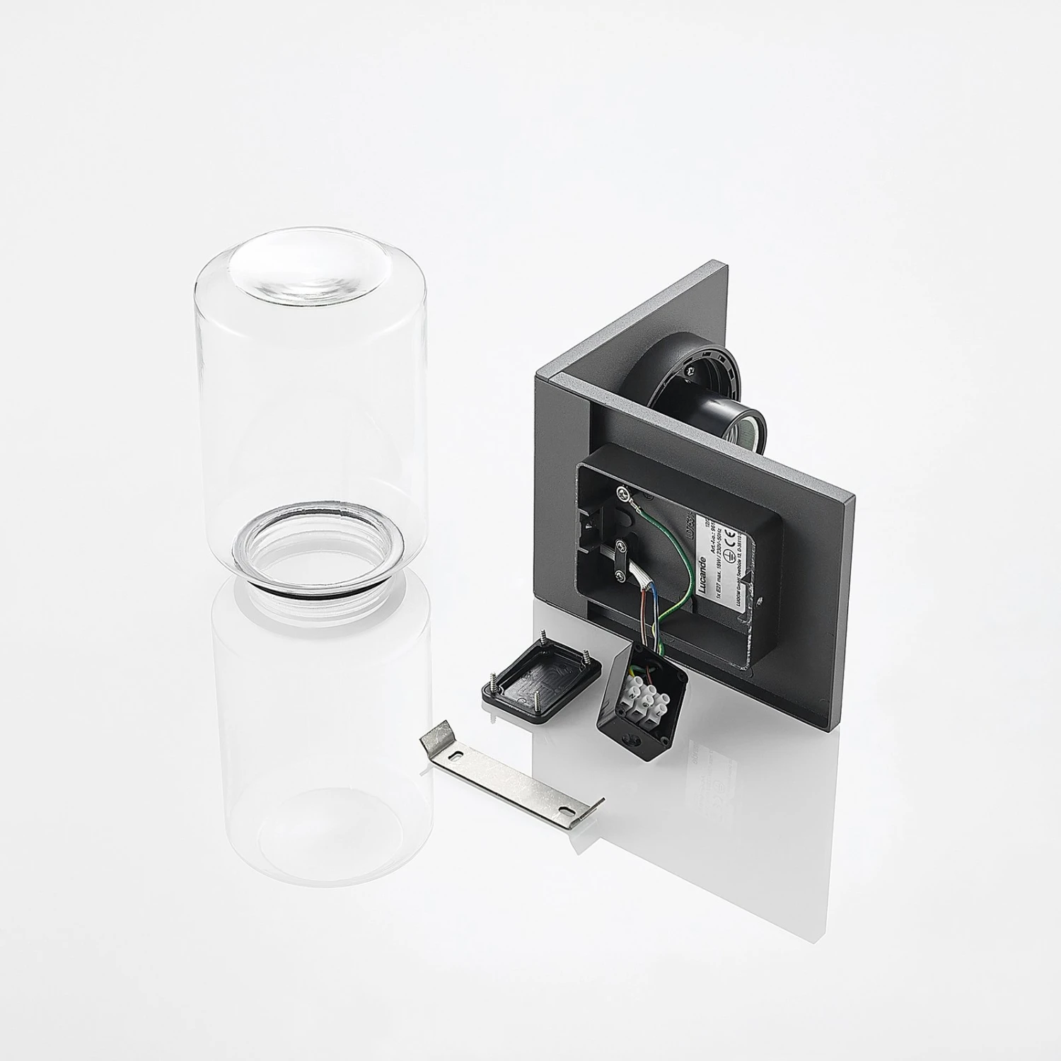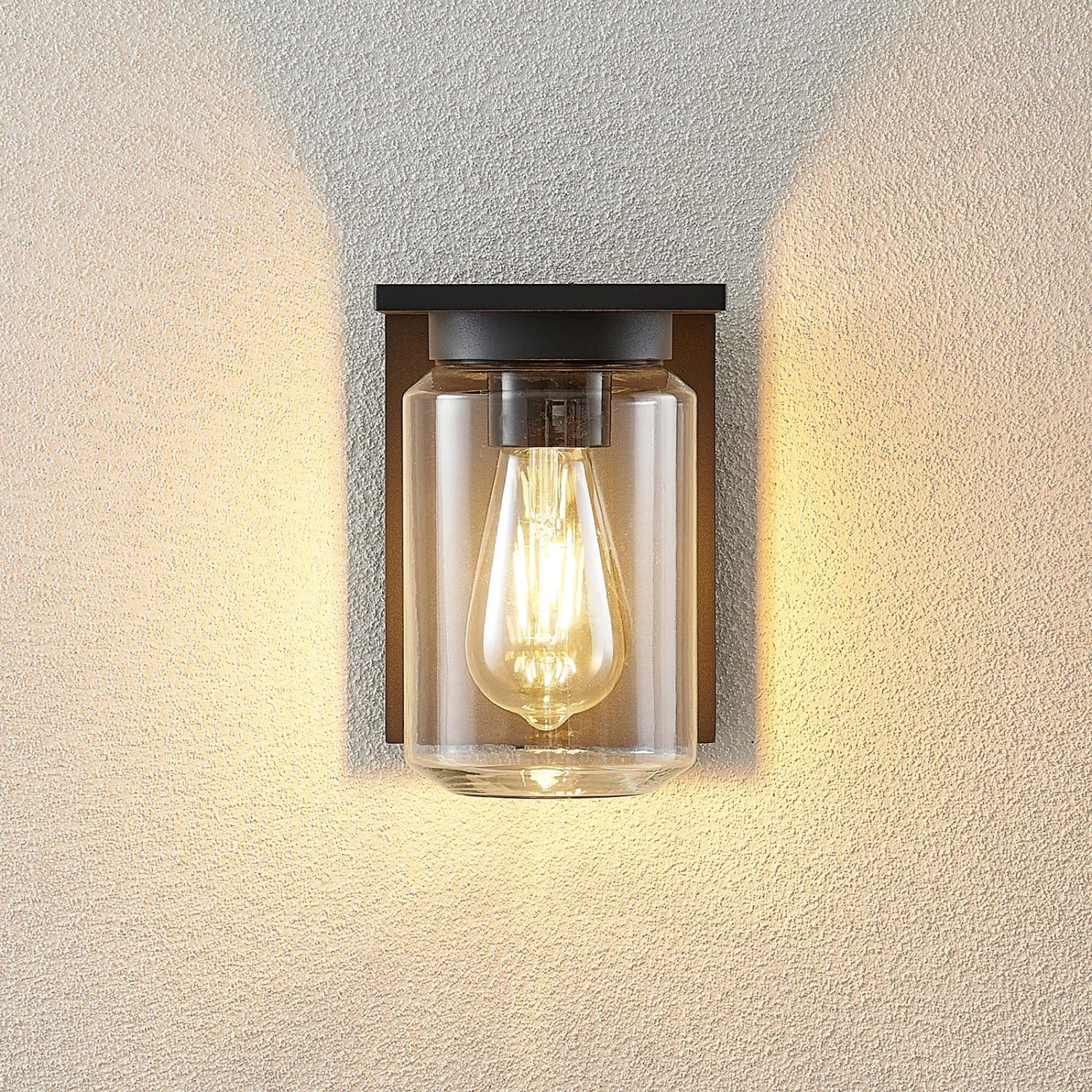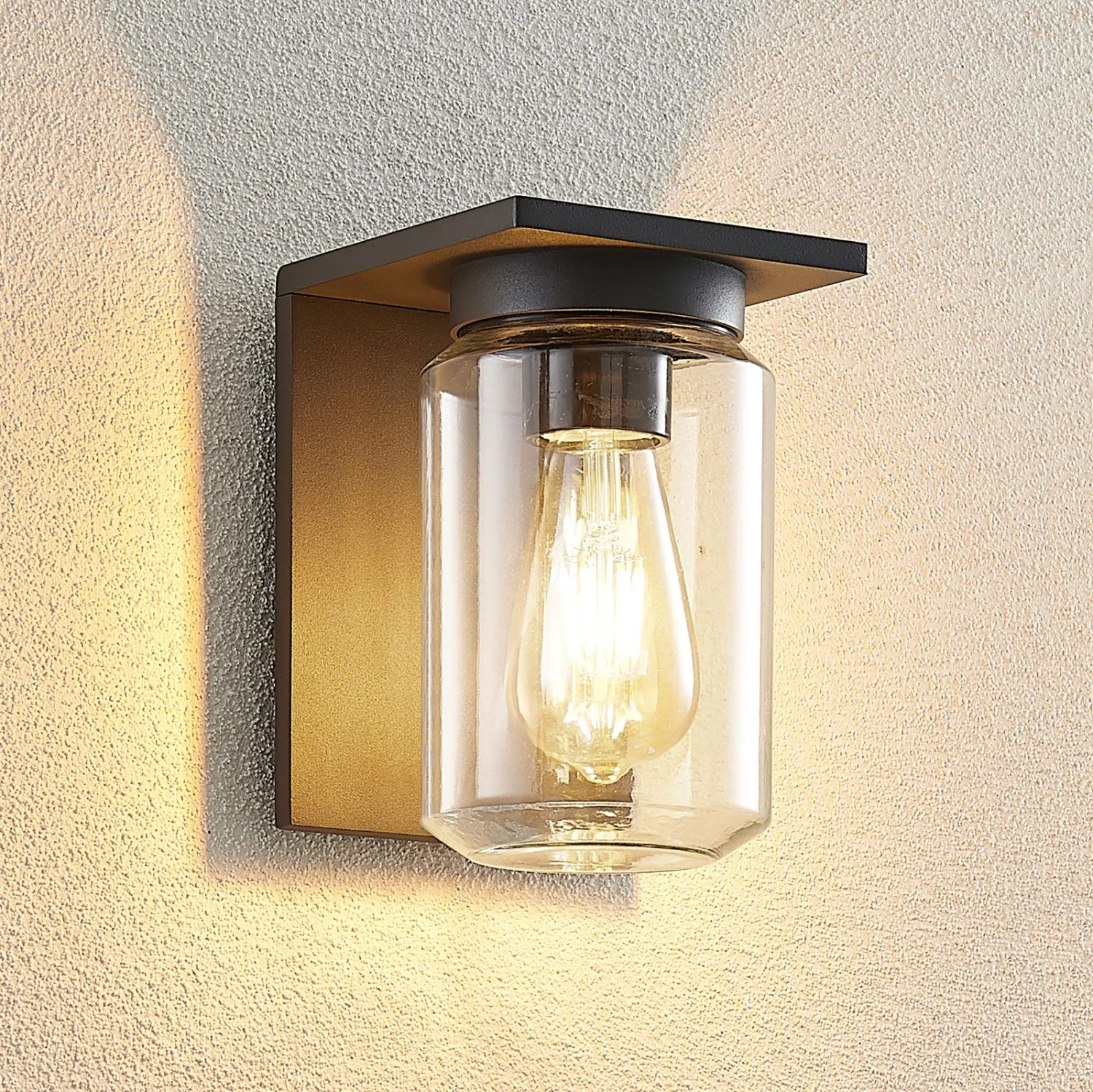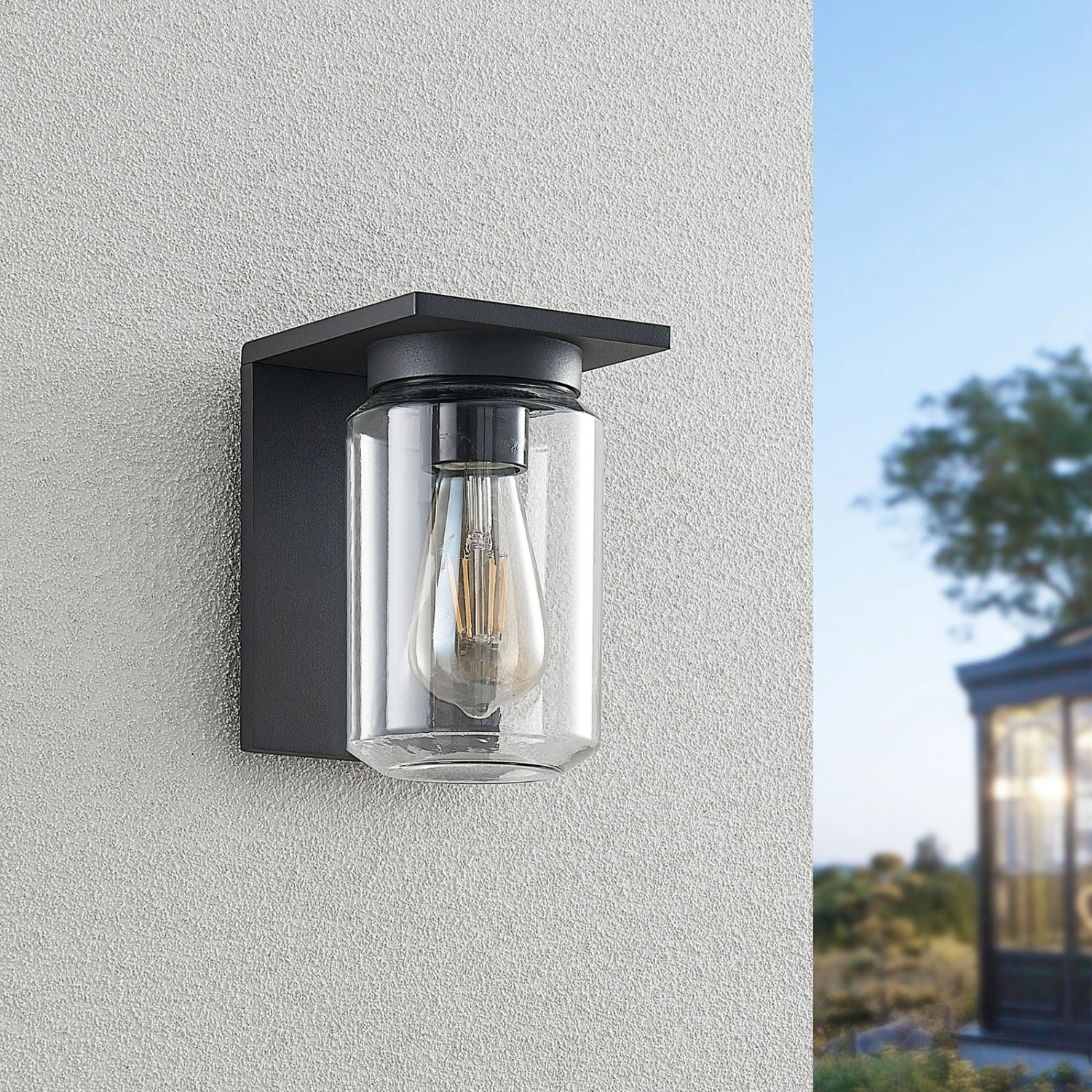 Außenwandleuchte Semka mit einem Leuchtenschirm aus Temperglas