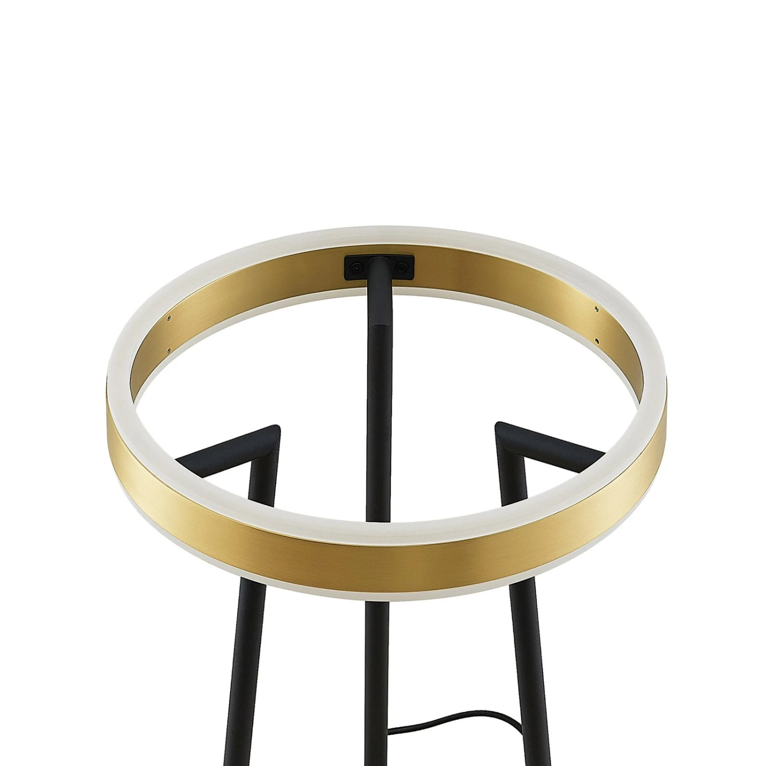 Die LED-Tischlampe Seppe eignet sich hervorragend für eine Akzentbeleuchtung auf einer Kommode oder einem Schreibtisch. Sie steht auf einem kreisförmigen Standfuß, von dem sich drei Streben erheben und einen Kranz halten, in dem eine fest verbaute LED sitzt. Durch einen Touch-Schalter ist es möglich, die Leuchte wie gewohnt ein- und auszuschalten. Durch die 3-Stufen-Dimmtechnik mit integrierter Off-Funktion lässt sie sich zudem durch mehrmaliges Betätigen des Schalters in drei unterschiedliche Stufen ihrer Helligkeit dimmen: 100 %, 50 % und 10 %. Die attraktive Farbkombination aus Schwarz und Messing macht die LED-Tischleuchte Seppe zu einem stilvollen Dekorationsgegenstand, welcher auffällige Akzente innerhalb des restlichen Mobiliars setzt.