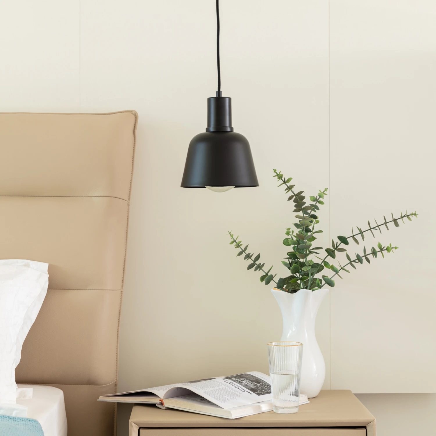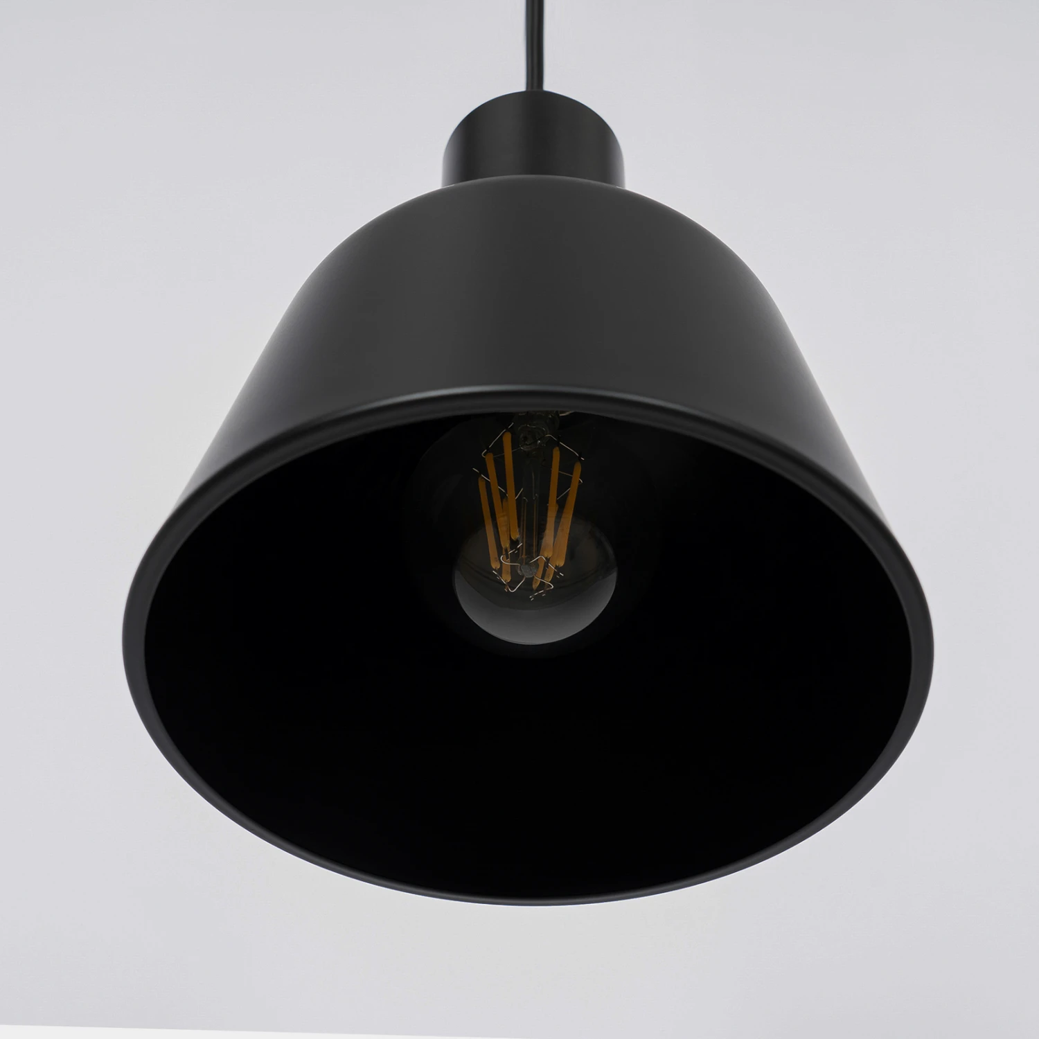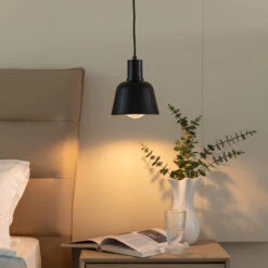 Die Pendellampe Servan hat einen schwarzen, eher kompakten Metallschirm aus Eisen, so dass der Lichtschein nur nach unten austreten kann und die Leuchte sich wunderbar für die Ausleuchtung einer Tischfläche eignet. Dabei kann es sich um den Küchentisch handeln, aber auch ein Couchtisch erscheint als geeignet. Die Anbringung mehrerer Leuchten in einer Reihe ist ebenfalls denkbar, wenn man zum Beispiel einen Tresen beleuchten möchte. Das exklusive Design dieser Hängeleuchte passt mit der reduzierten Formensprache und der einfarbigen Gestaltung in Schwarz auch gut zu skandinavischen Stilen im Wohnbereich, die auf eine stilvolle und geradlinige Gestaltung setzen