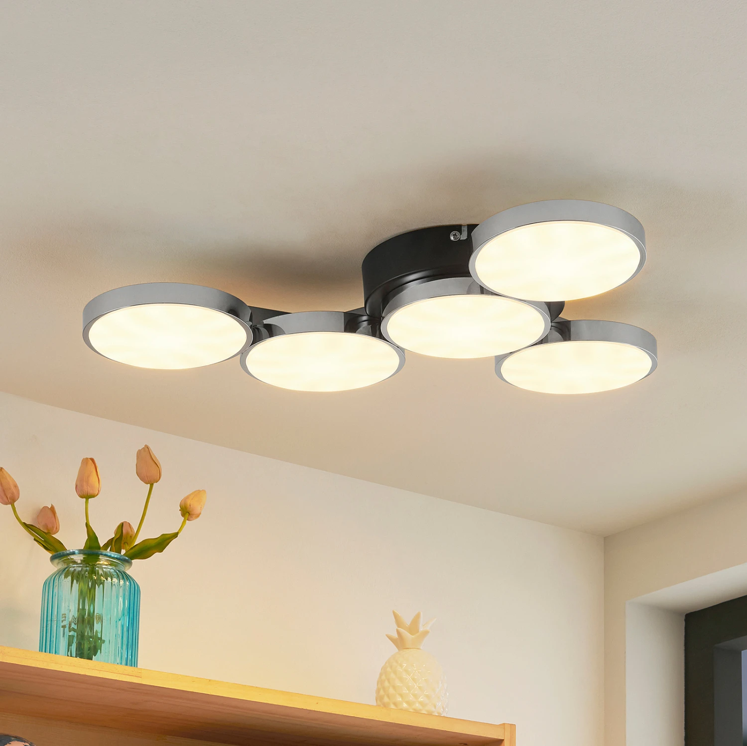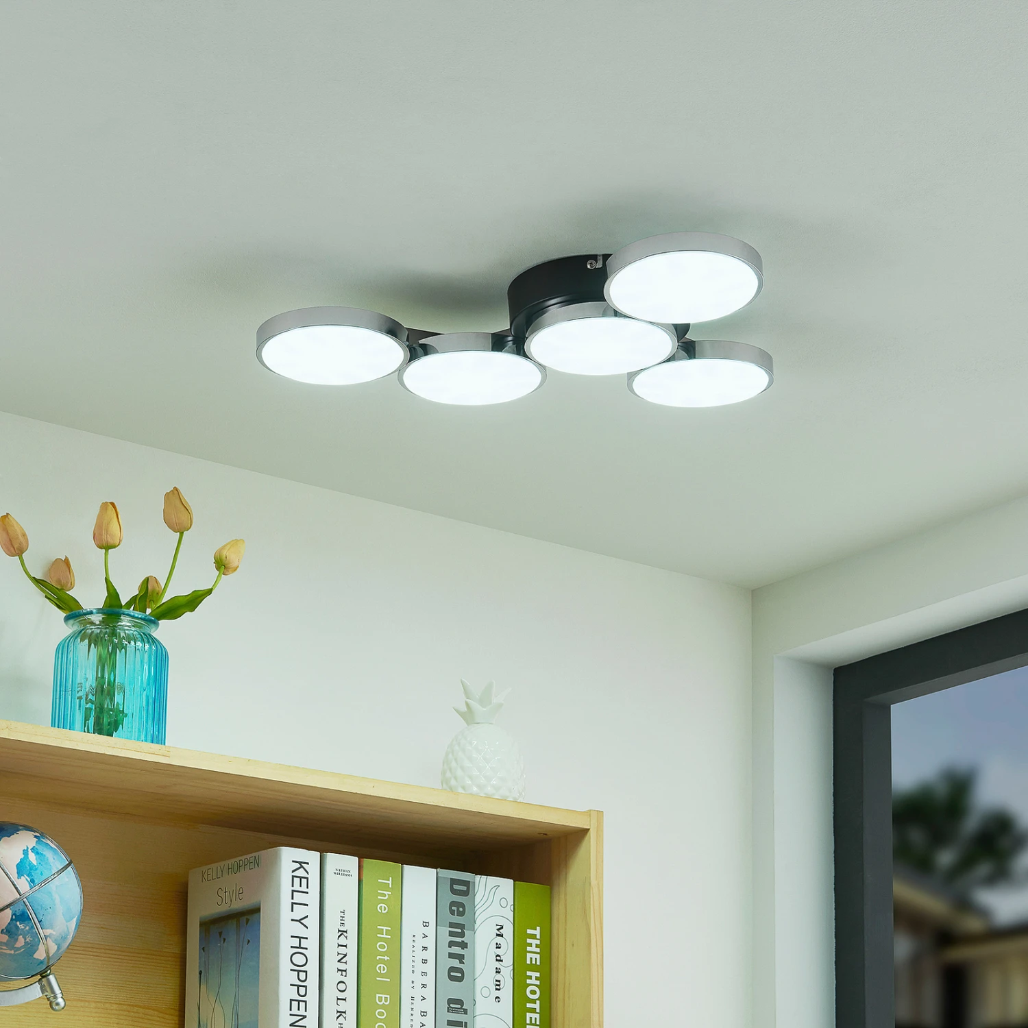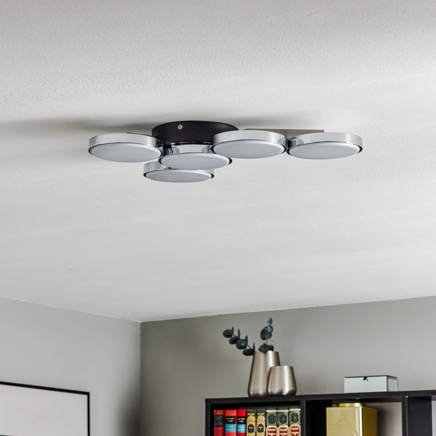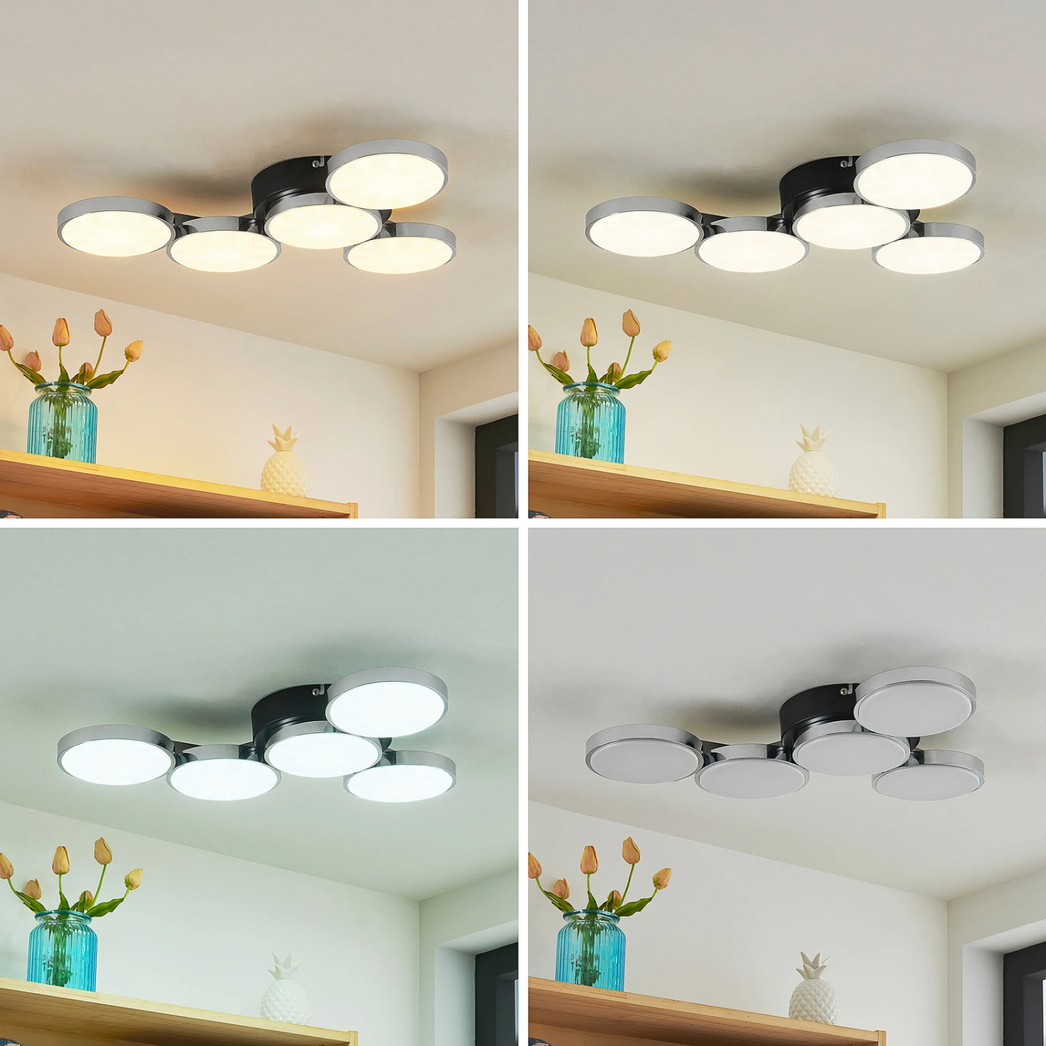 Holen Sie sich mit der formschönen LED-Deckenlampe Sevyn hervorragende Lichtverhältnisse und eine wohnliche Wohnatmosphäre in Ihr Zuhause. Die Leuchte verfügt über eine Farbwechselfunktion, mit der Sie die Lichtfarbe Ihren individuellen Bedürfnissen anpassen können. Das Licht lässt sich mit Hilfe einer Fernbedienung nach Ihren Wünschen dimmen. Mittels einer Fernbedienung kann die Lampe intuitiv bedient werden. Das Modell Sevyn ergänzt Ihr persönliches Einrichtungskonzept durch das moderne Design, überzeugt in den Farben Nickel und Chrom und ist für jedes Ihrer Zimmer ausgezeichnet geeignet. In Lucande-Markenqualität steht es für ein überzeugendes Wohnerlebnis und tolle Gestaltung. Diese Lampe versprüht ein gemütliches Flair.