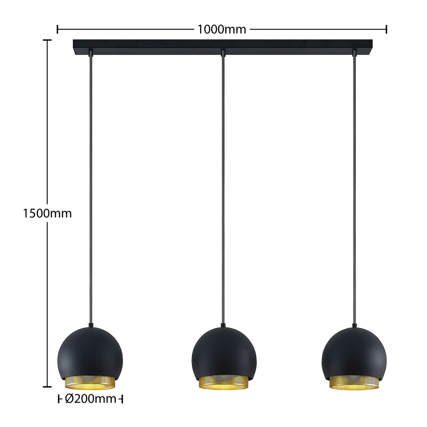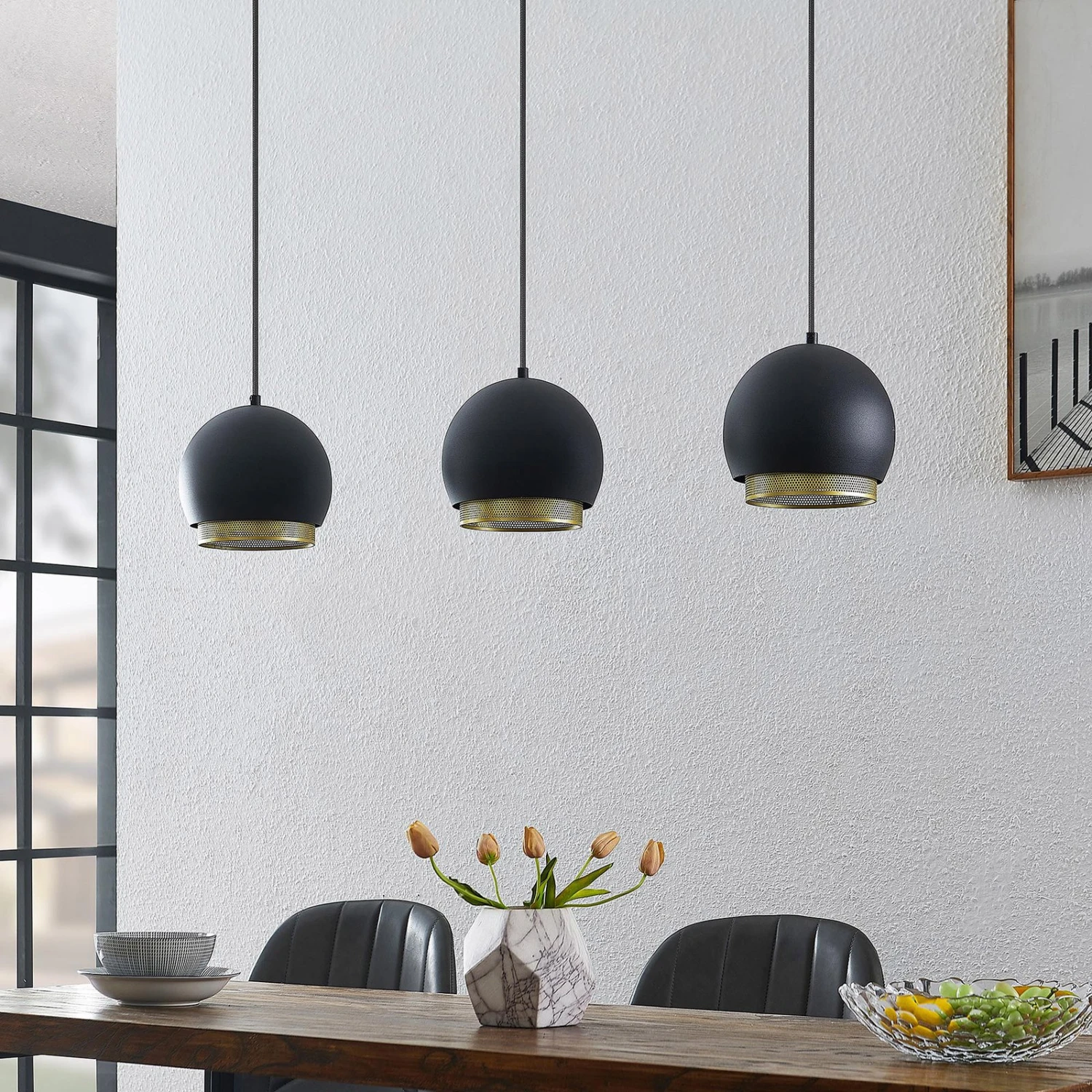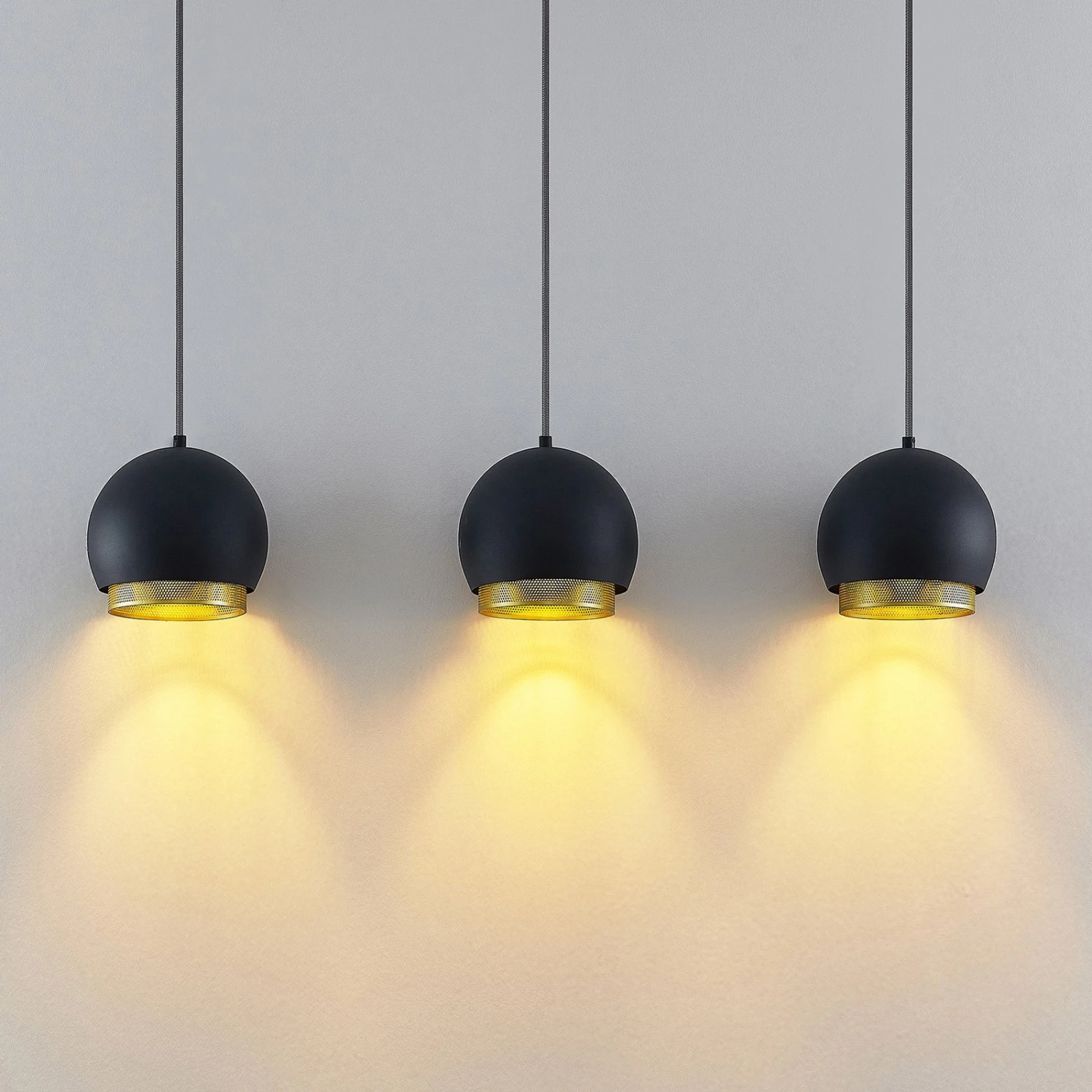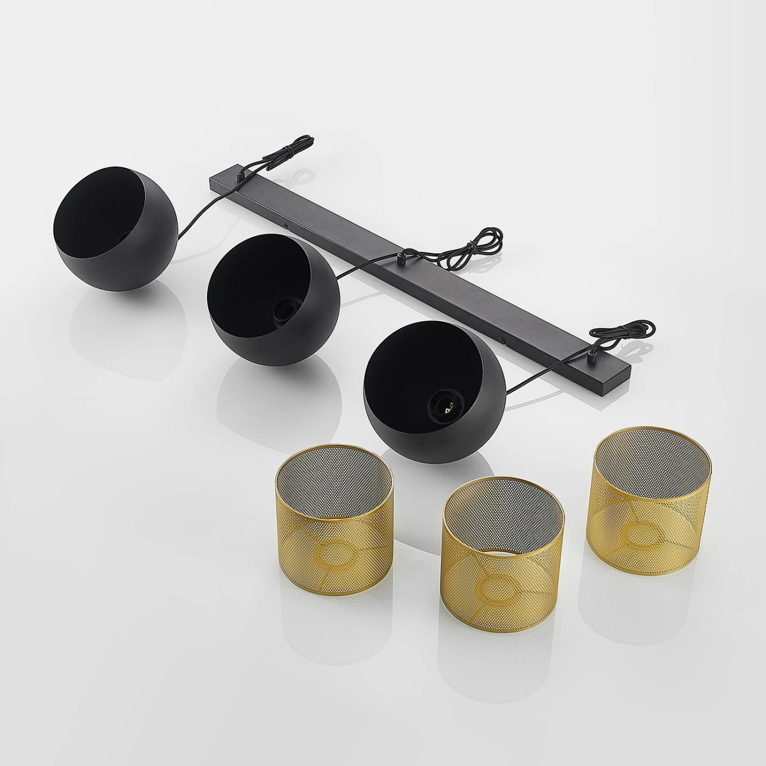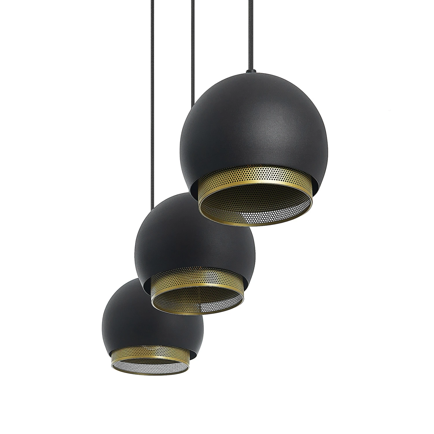 Dreiflammige Hängeleuchte Sivanel in Schwarz und Gold