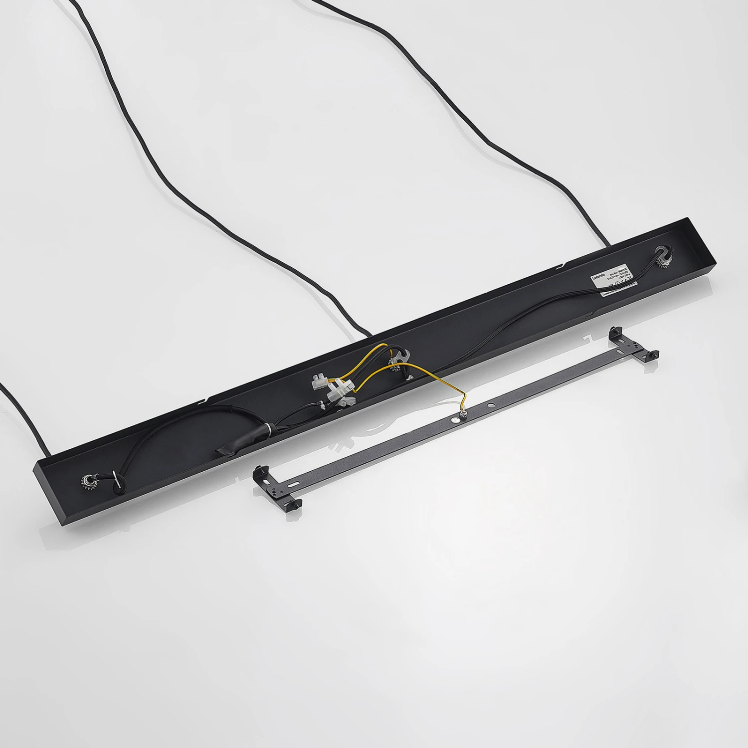 Die Hängeleuchte Sivanel eignet sich wunderbar zur Beleuchtung von größeren Esszimmertischen oder auch Theken. Ihr Design wirkt modern und zugleich einladend, sodass sie auch im gewerblichen Bereich sicher einen Platz findet. Sie besitzt eine längliche Deckenhalterung, an der drei Textilkabel befestigt sind. An diesen hängen die kugelförmigen Leuchtenschirme hinab, die in einem eleganten Schwarz gestaltet wurden. Das Außergewöhnliche an dieser Leuchte sind jedoch die zusätzlichen Innenschirme, die mit einem goldenen Finish versehen und gezielt punktiert wurden. Dies bringt stilvolle Effekte an die Wände des Wohnraumes. Auch im Bereich des Gewerbes kann diese schöne Leuchte gut zur Geltung kommen.