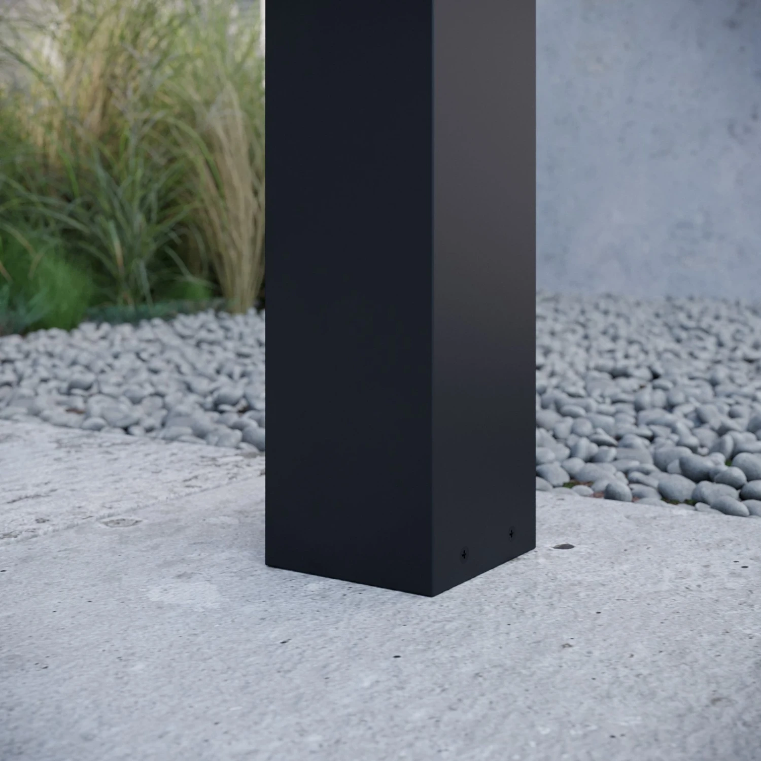 Kiran – Sockelleuchte in Grafitgrau Die Sockelleuchte Kiran ist modisch gestaltet worden und zeigt sich in modernem Gewand, das aber auch dezent ist. So ist der Leuchtenkörper, der im oberen Teil in den Schirm übergeht, durchgängig in Quaderform gehalten. Das Gestell ist grafitgrau lackiert, der Diffusor opalweiß. Dieser besteht aus Kunststoff, das sich gegenüber Glas mit einer höheren Schlagfestigkeit auszeichnen kann, was im Außenbereich gewiss keinen Nachteil darstellt.