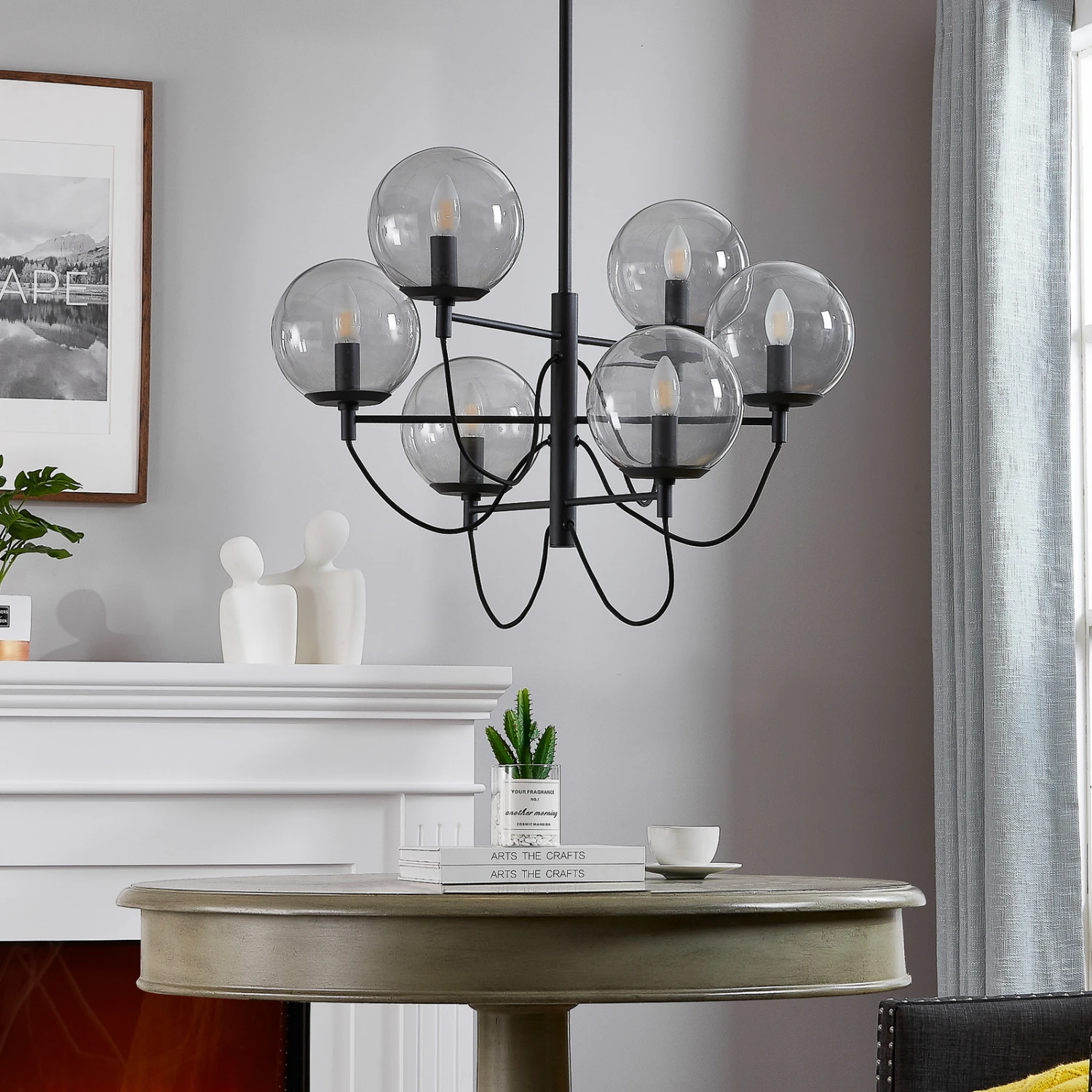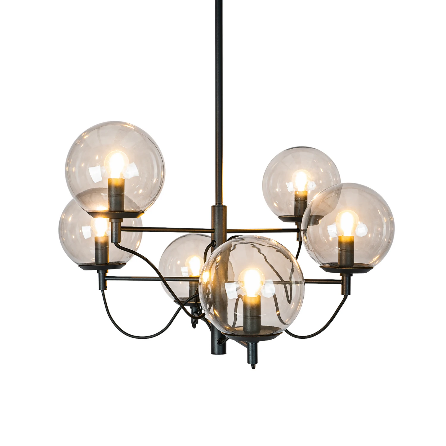 Sotiana gilt als moderne Neuinterpretation einer sehr klassischen Leuchtenserie und vereint hier ein schwarzes Eisengestell mit sechs Glaskugeln, die eine rauchgraue Tönung besitzen und mit dem größeren Volumen auch gleich ins Auge fallen. Das Design wirkt auf der einen Seite geradlinig, ist aber auf der anderen Seite auch von einem Hauch Luxus umgeben, zumal die Anbringung der Kugeln auf unterschiedlicher Höhe rund um die mittige Basis auch einen dynamischen Eindruck erzeugt.