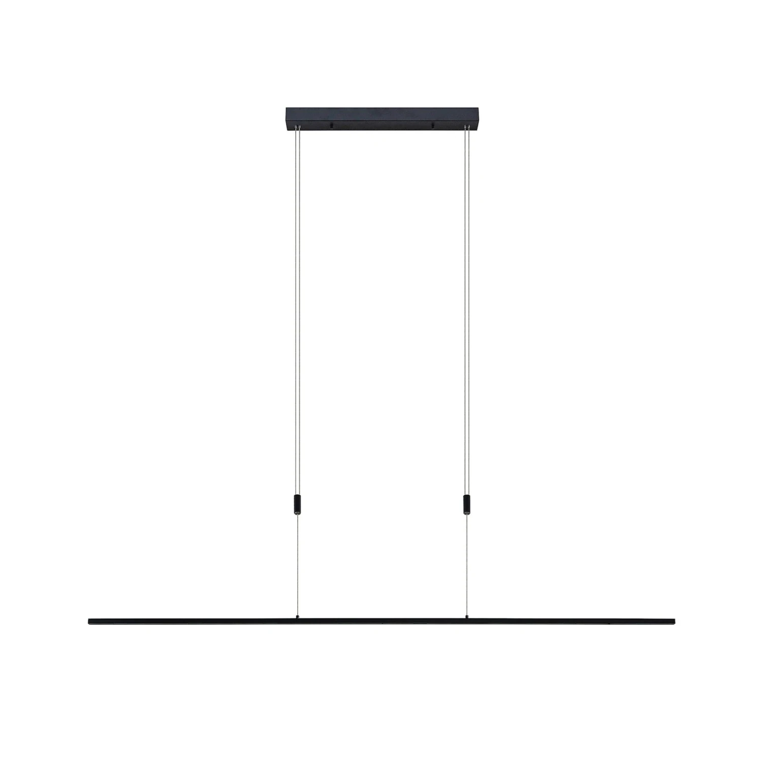 Ein langer Tisch im Esszimmer oder eine Insel oder eine Theke in der Küche – mit der LED-Hängeleuchte Stakato in modernem Design lassen sich viele Bereiche sehr flexibel beleuchten. Die aus Stahl mit einem Lichtelement aus Aluminium gefertigte, matt schwarz lackierte Hängeleuchte ist nicht nur in der Abhängung mit wenigen Handgriffen verstellbar, sondern auch in der Lichtstrahlung variabel einstellbar. Das Licht lässt sich über den vorhandenen Wandschalter ganz ohne zusätzliche Installation in drei Helligkeitsstufen schalten, einfach durch mehrmalige Betätigung des Lichtschalters. Die hinter Acrylabdeckungen verbauten LEDs strahlen in warmweißer Lichtfarbe. Durch einen Wandschalter ist es möglich, die Leuchte wie gewohnt ein- und auszuschalten. Durch die 3-Stufen-Dimmtechnik mit integrierter Off-Funktion lässt sie sich zudem durch mehrmaliges Betätigen des Schalters in drei unterschiedliche Stufen ihrer Helligkeit schalten (100 %, 50 % und 10 %).