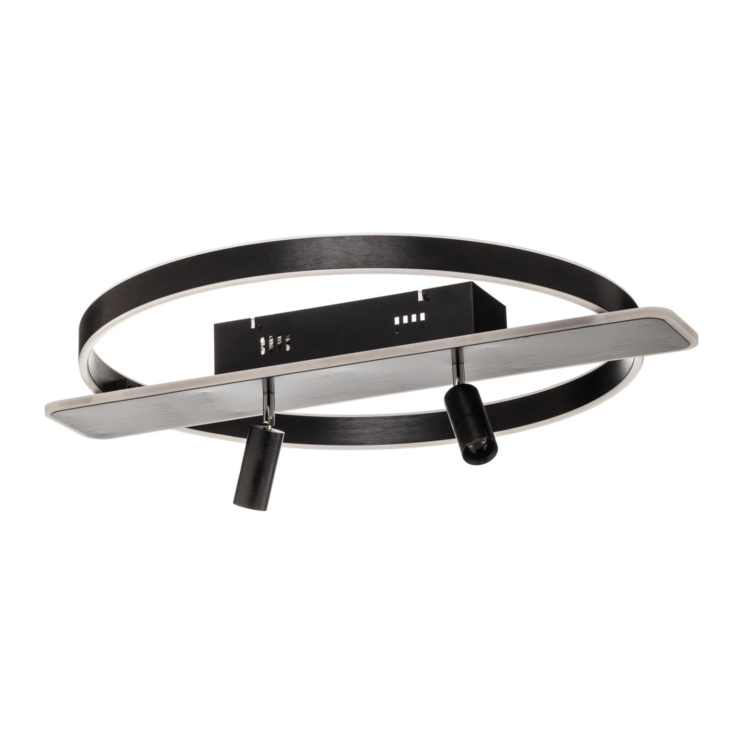 Diese Deckenlampe ist ein funktionaler Lichtspender in einem exklusiven Design, der gut zu modernen Wohnumgebungen passt und sowohl mit LED-Lichtbändern am Rahmen als auch mit zwei Strahlern ausgestattet ist. Die unterschiedlichen Lichtquellen lassen sich jeweils alleine und getrennt voneinander betreiben oder aber zusammen einschalten. Dabei sind die Strahler beweglich und können in die gewünschte Richtung gedreht werden. Bedient wird die Leuchte über die beiliegende Fernbedienung, die auch ein Dimmen der Helligkeit erlaubt, so dass die Leuchte allen erdenklichen Situationen vor Ort gut gerecht werden kann. Mit der guten Grundhelligkeit kann Stigla ideal als Grundbeleuchtung im Raum eingesetzt werden, die sich natürlich prima um weitere Lichtquellen ergänzen lässt.