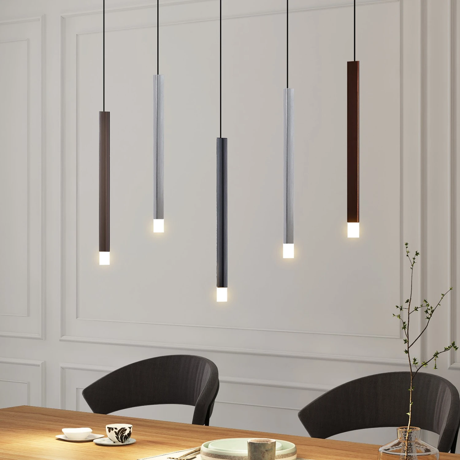 Die LED-Pendelleuchte Stoika eignet sich sowohl für den Gebrauch über einem langen Esszimmertisch als auch über einem Tresen, denn sie kann mit ihren fünf Lichtquellen den unter ihr liegenden Bereich sehr gut ausleuchten. Dank der mattierten Kunststoffabdeckungen fällt das warmweiße Licht sanft auf die Tischoberfläche und verteilt sich gleichmäßig, ohne zu blenden.