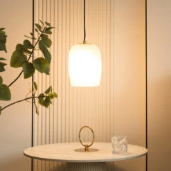 Die stimmige Hängelampe Taylan findet ihren perfekten Platz in einem Wohnzimmer oder über einem Esstisch. Sie besitzt einen Schirm aus Glas, der milchig gehalten ist und drei G9-Fassungen besitzt. Diese können mit den entsprechenden Leuchtmitteln bestückt werden – was eine freie Wahl nach Lichtfarbe möglich macht. Der auf der Unterseite geöffnete Schirm erzeugt eine blendfreie Beleuchtung und ergibt eine gemütliche Stimmung. Taylan kann unkompliziert mit weiteren Leuchten ihrer Serie kombiniert werden.
