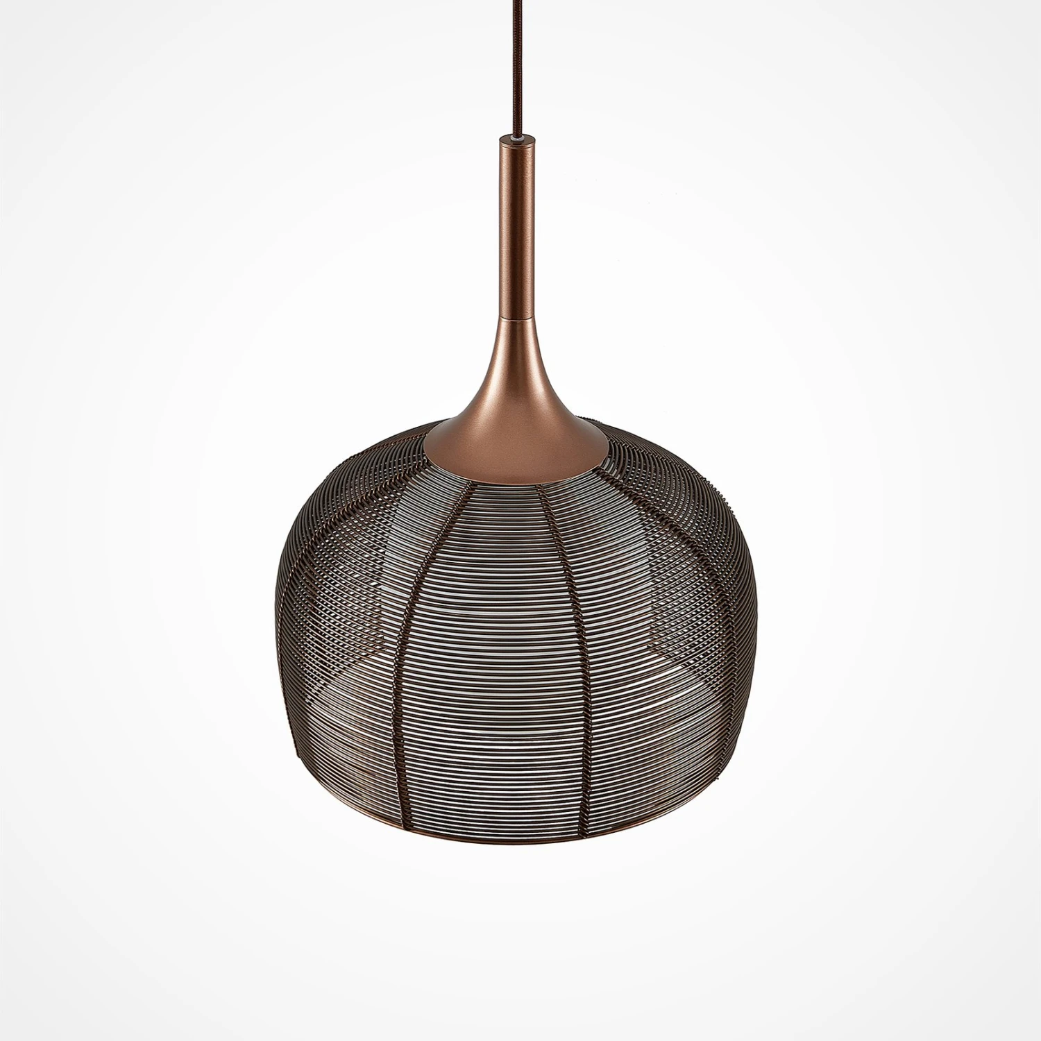 Braune Hängelampe Tetira mit bauchigem Metallschirm