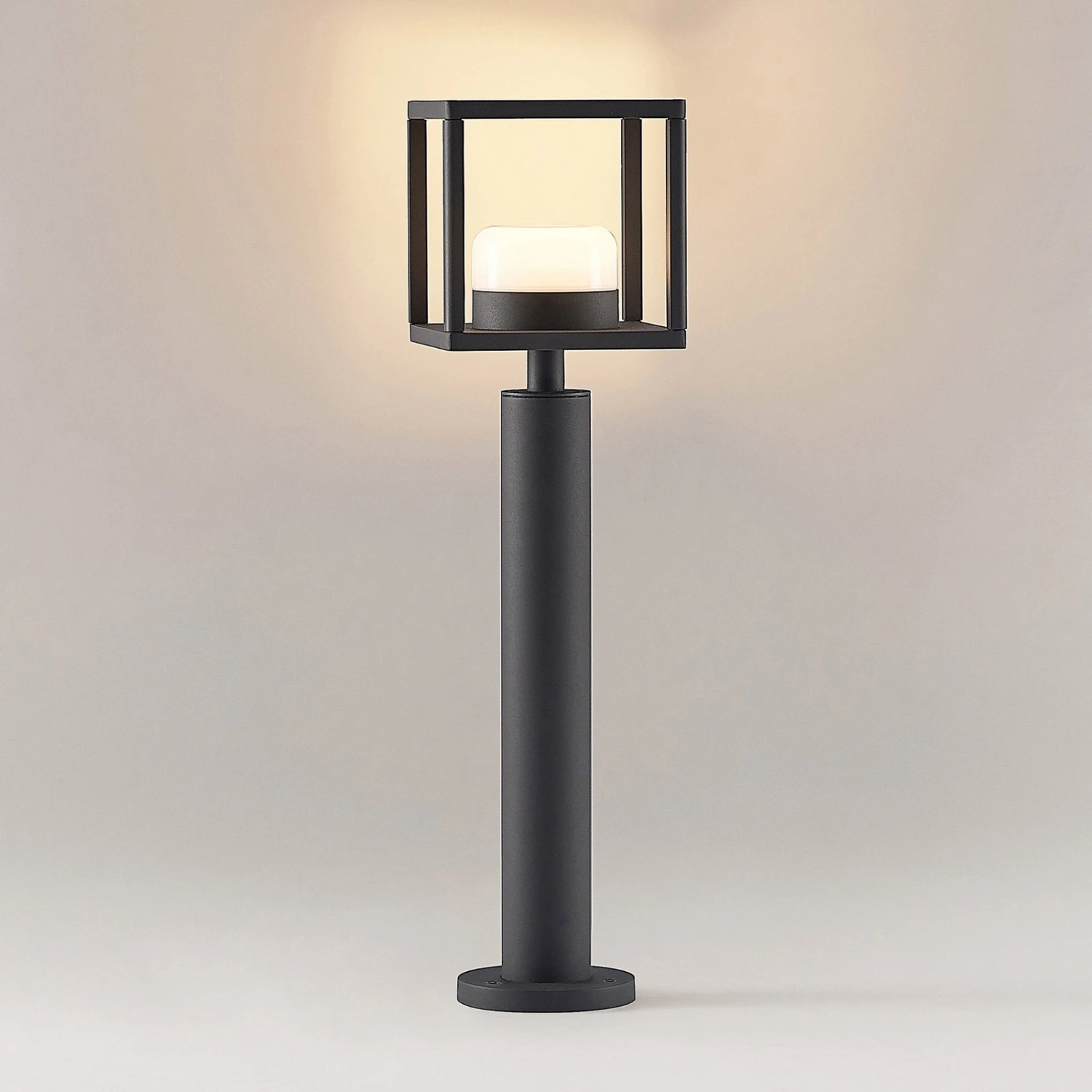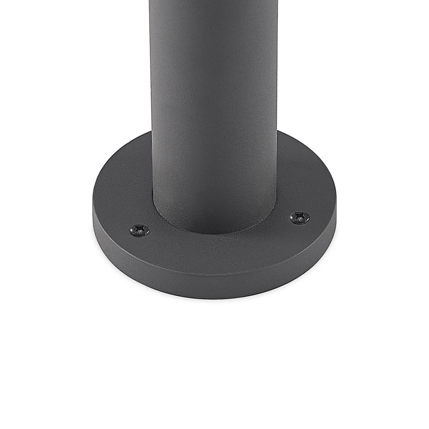 Die Wegeleuchte Timio begeistert mit ihrem minimalistischen Design, das zugleich sehr besonders wirkt. Im Vordergrund stehen geometrische Formen wie der zylinderförmige Ständer und der quaderförmige Rahmen um die weiße Leuchtschirmabdeckung. Die Wegeleuchte wurde aus Aluminium hergestellt und mit einem dunkelgrauen Finish überzogen, das zur Zeit sehr im Trend liegt. Timio lässt sich gut in eine moderne Umgebung einfügen und kann dank der guten Schutzart langfristig im Außenbereich dienen.
