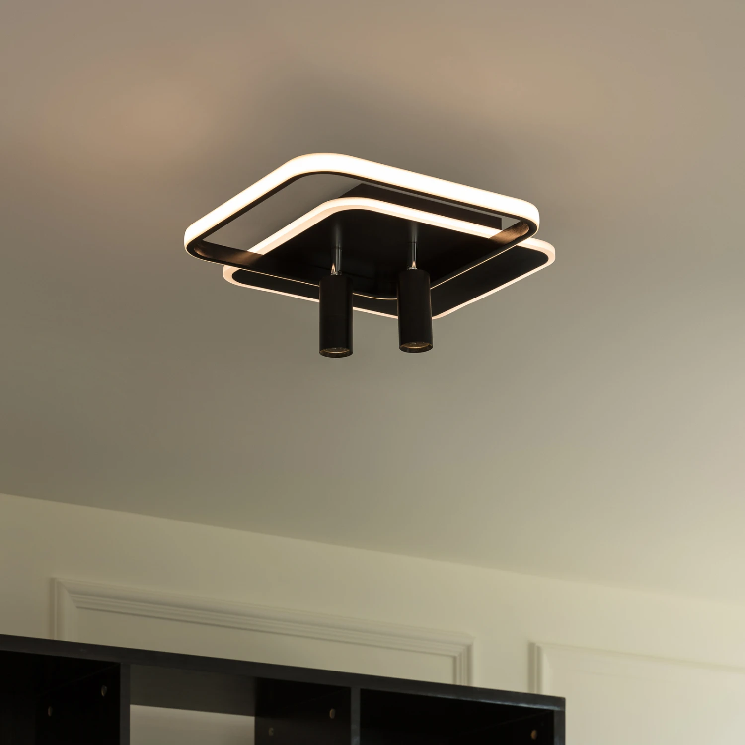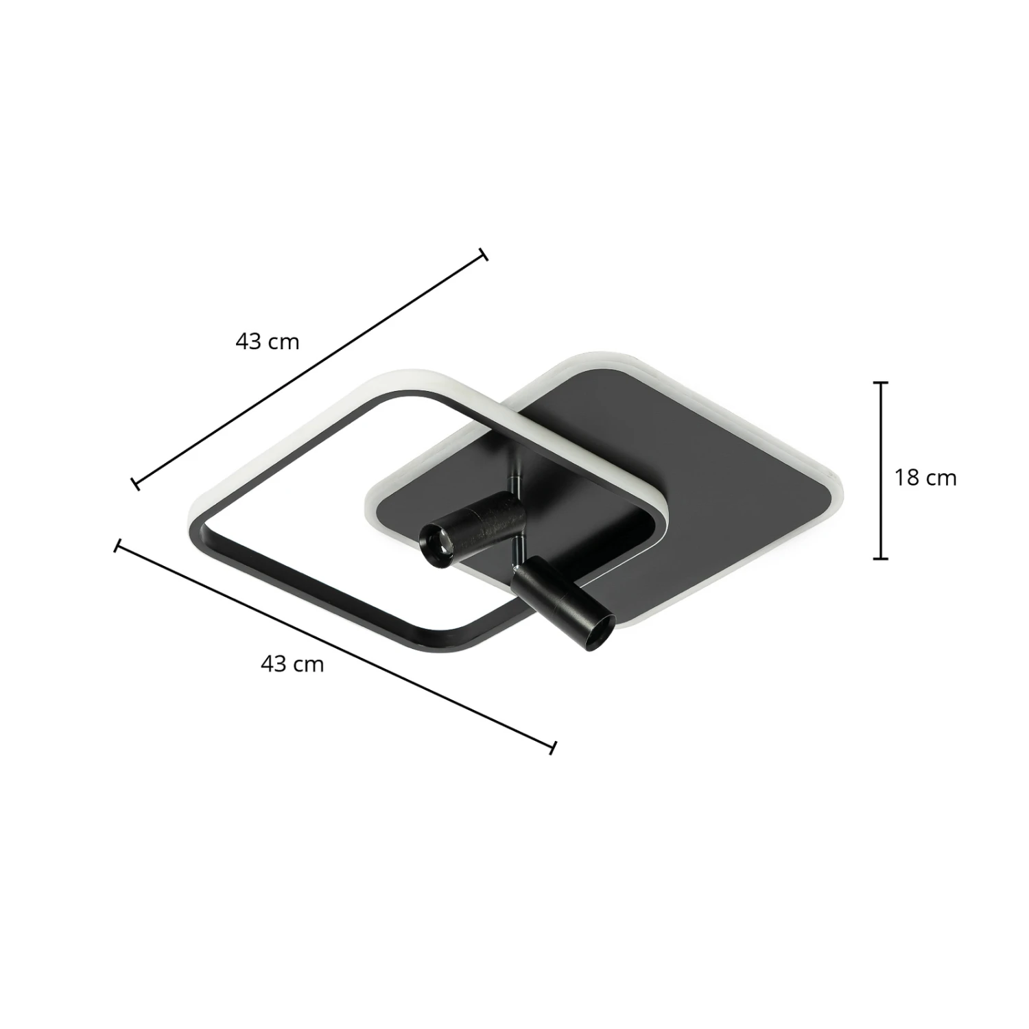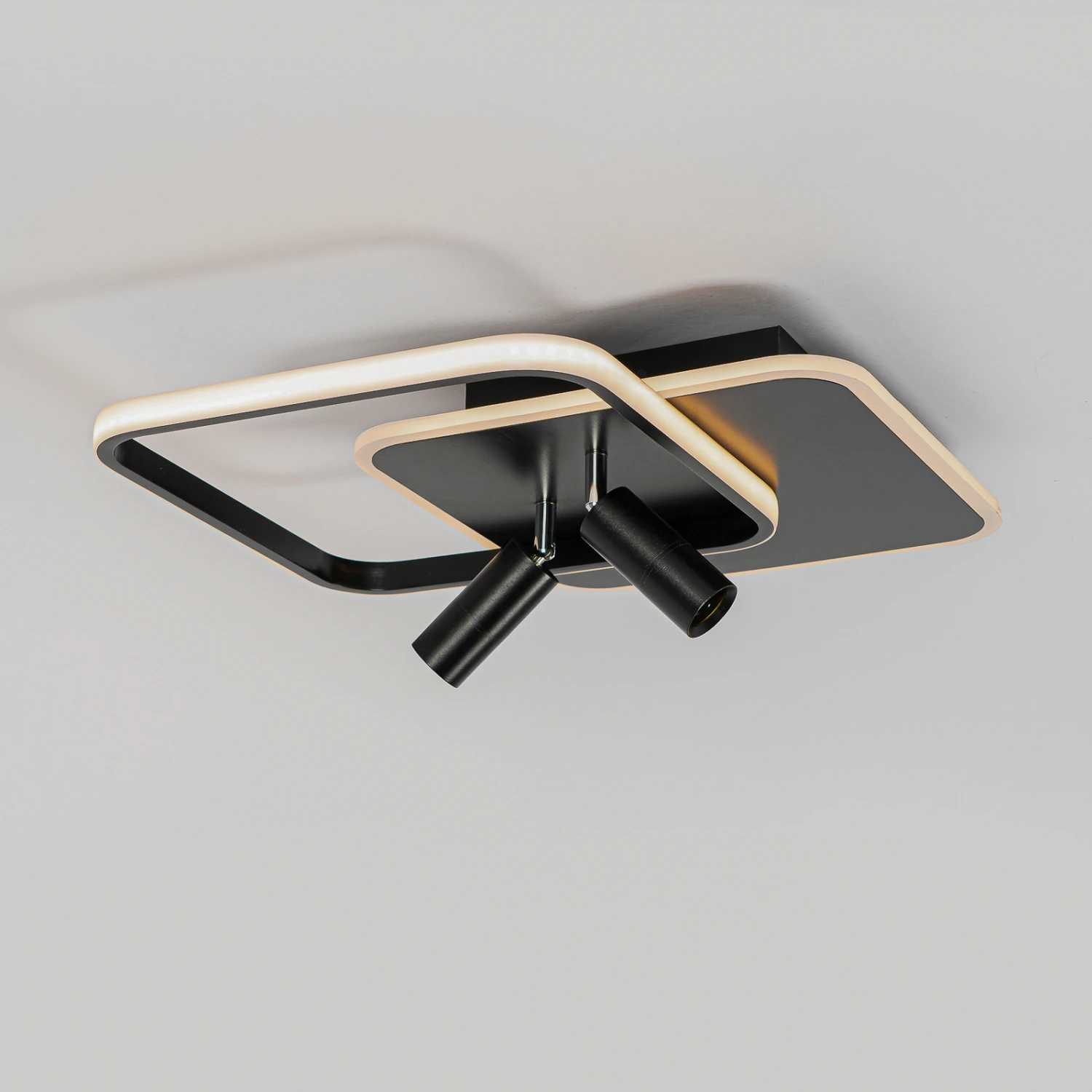 Eckige LED-Deckenleuchte Tival in Schwarz mit Fernbedienung