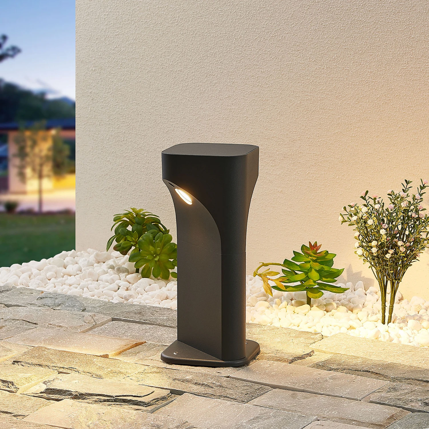Moderne Außenbeleuchtung – LED-Sockelleuchte Valdeta mit warmweißen Licht