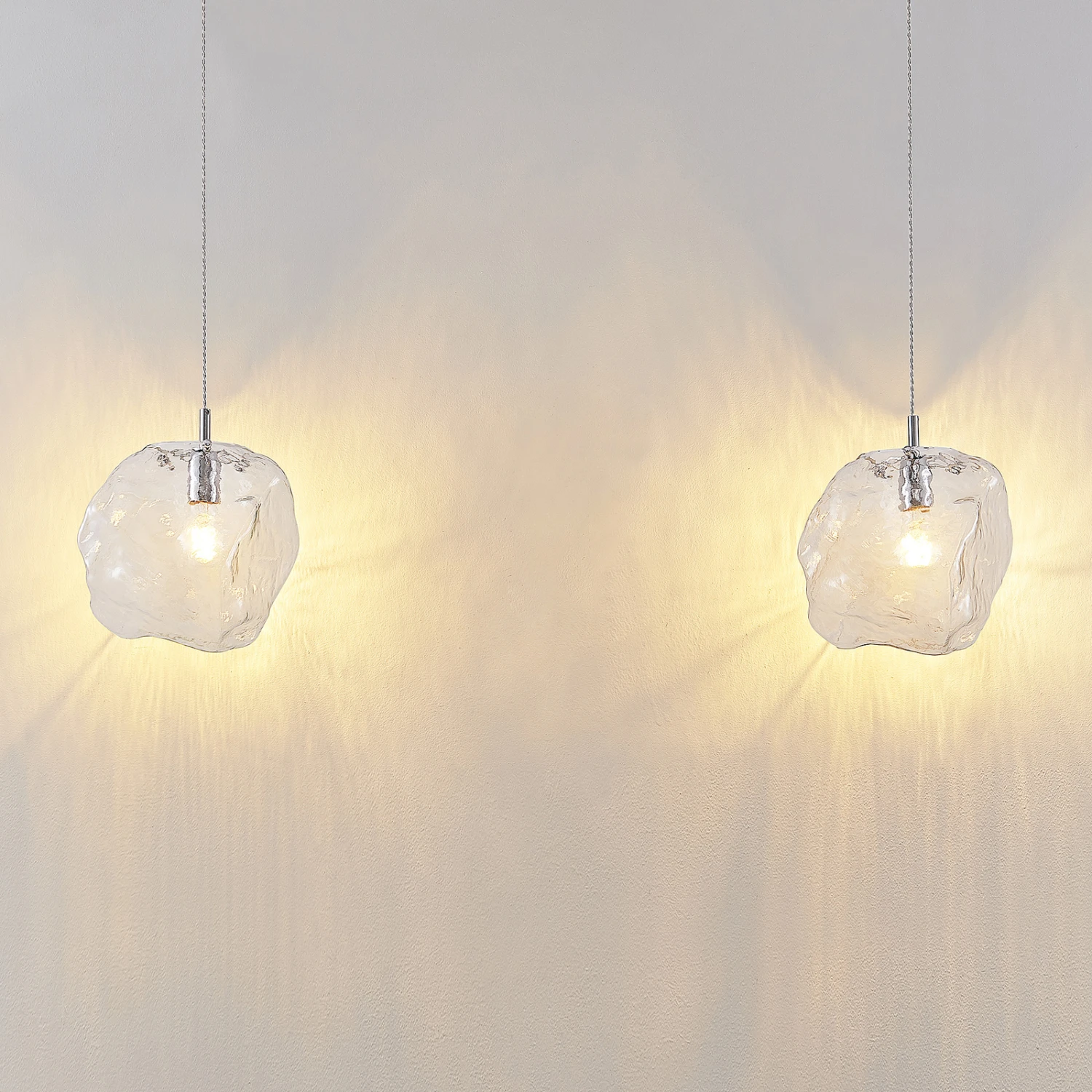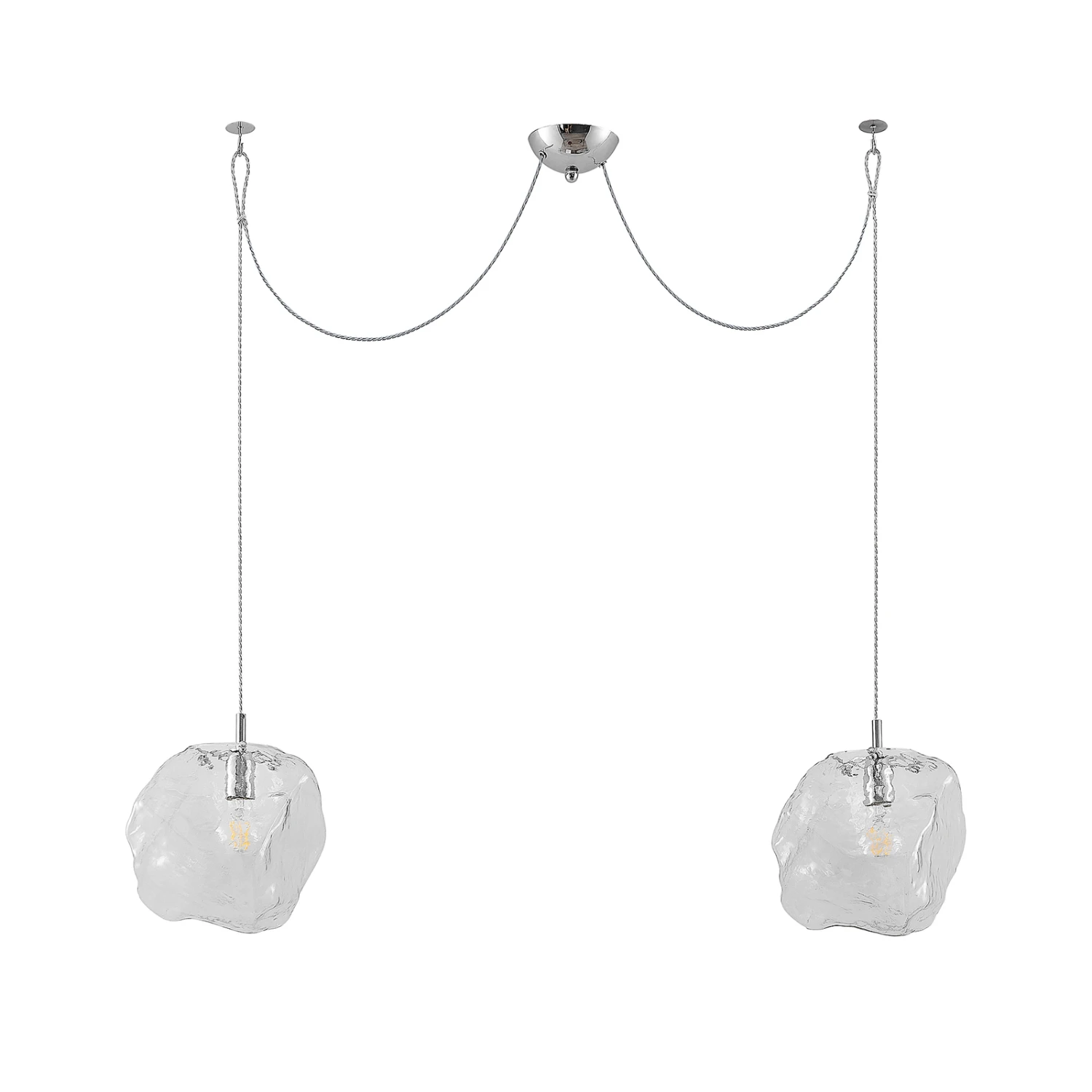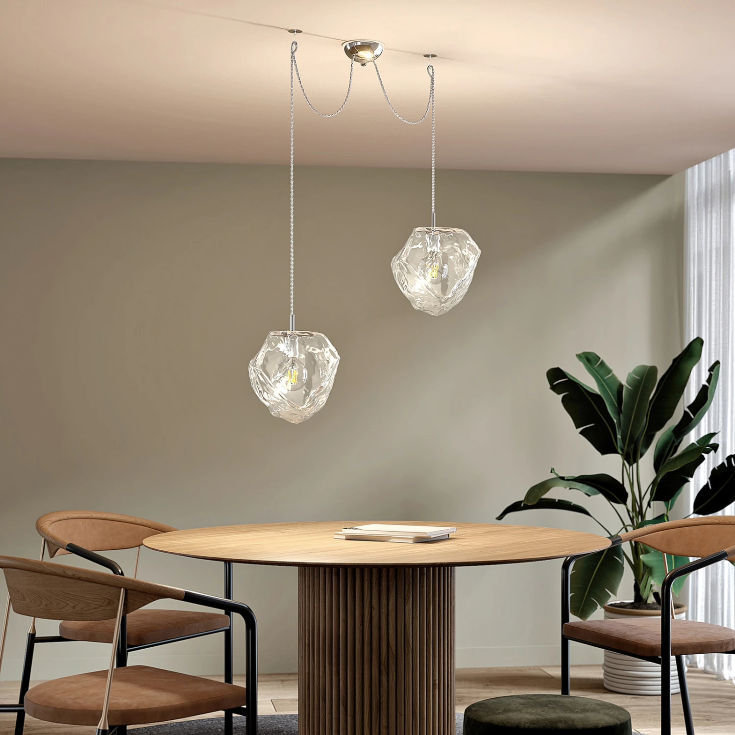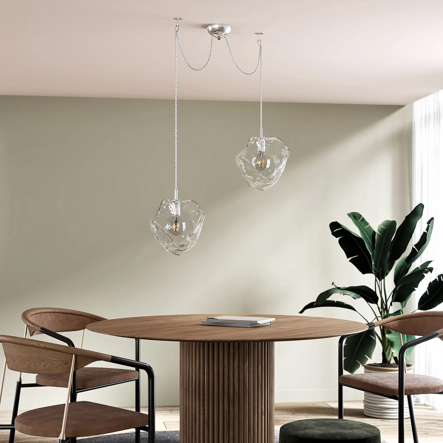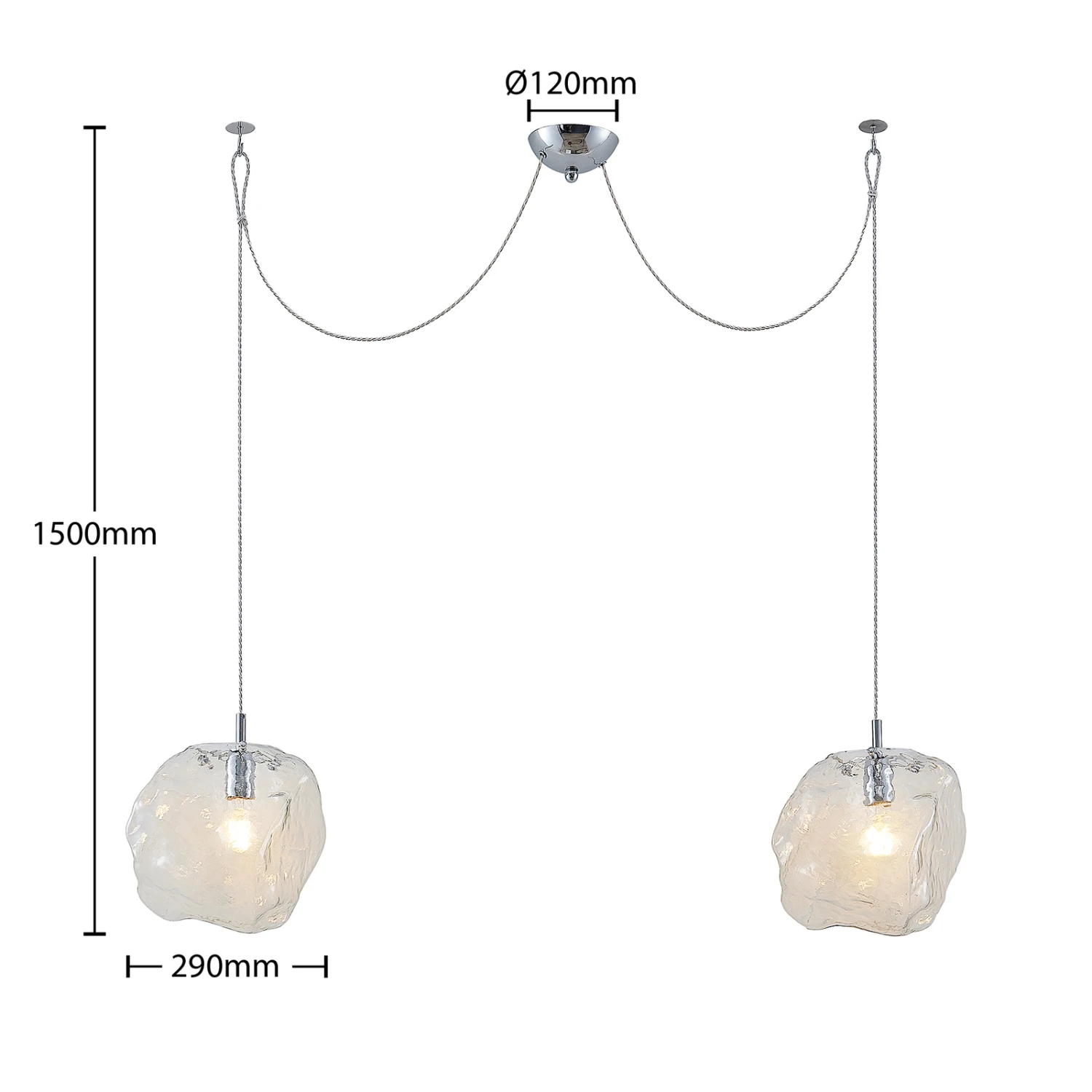 Dezentrierte Hängeleuchte Valina mit zwei Leuchtenschirmen aus Glas
