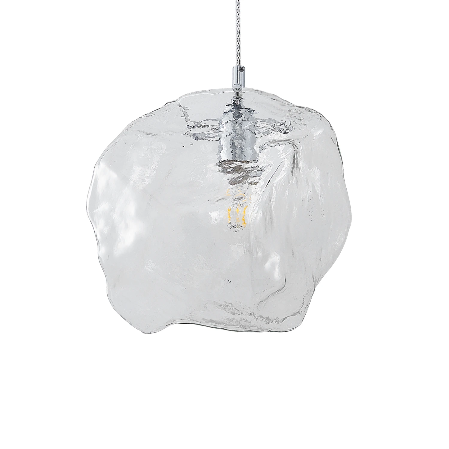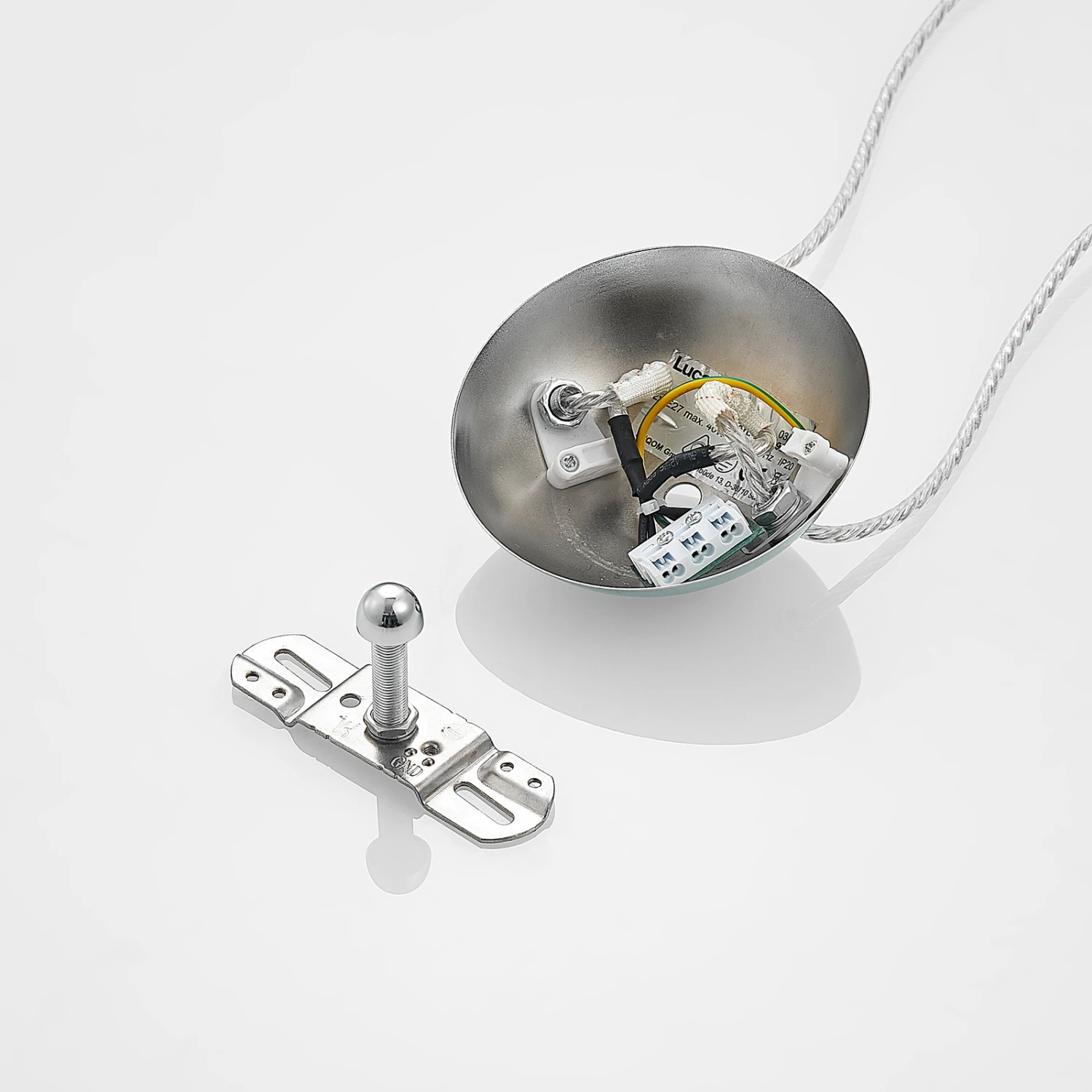 Valina ist eine schöne Hängeleuchte, die besonderes Flair in den Raum bringt. Die Deckenhalterung und Abhängung wurden aus Eisen hergestellt und in einem neutralen Chrom gehalten, sodass der Fokus auf den wohlgeformten Leuchtenschirmen aus Glas liegt. Diese können dezentral an der Decke angebracht werden.