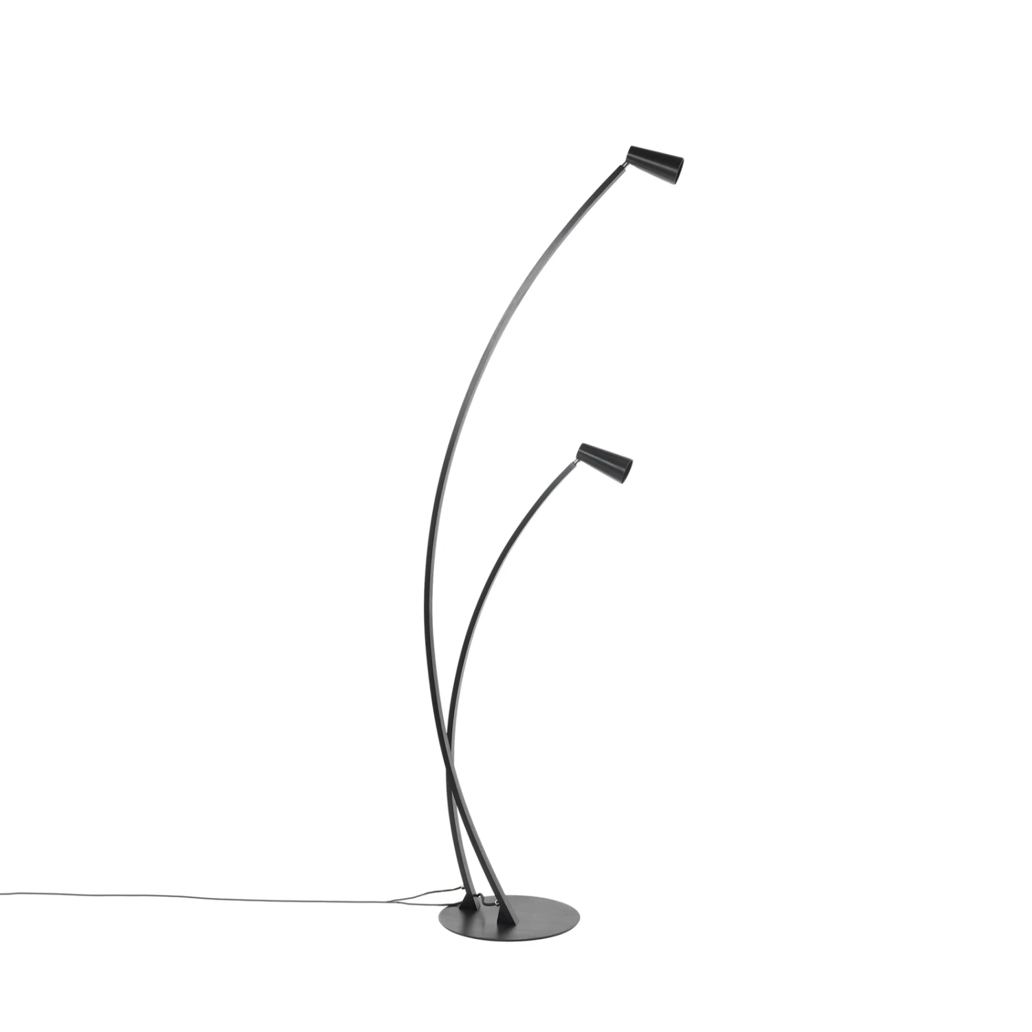 Bogenförmige Stehlampe Velanoris in zweiflammiger Ausführung, schwarze Oberfläche