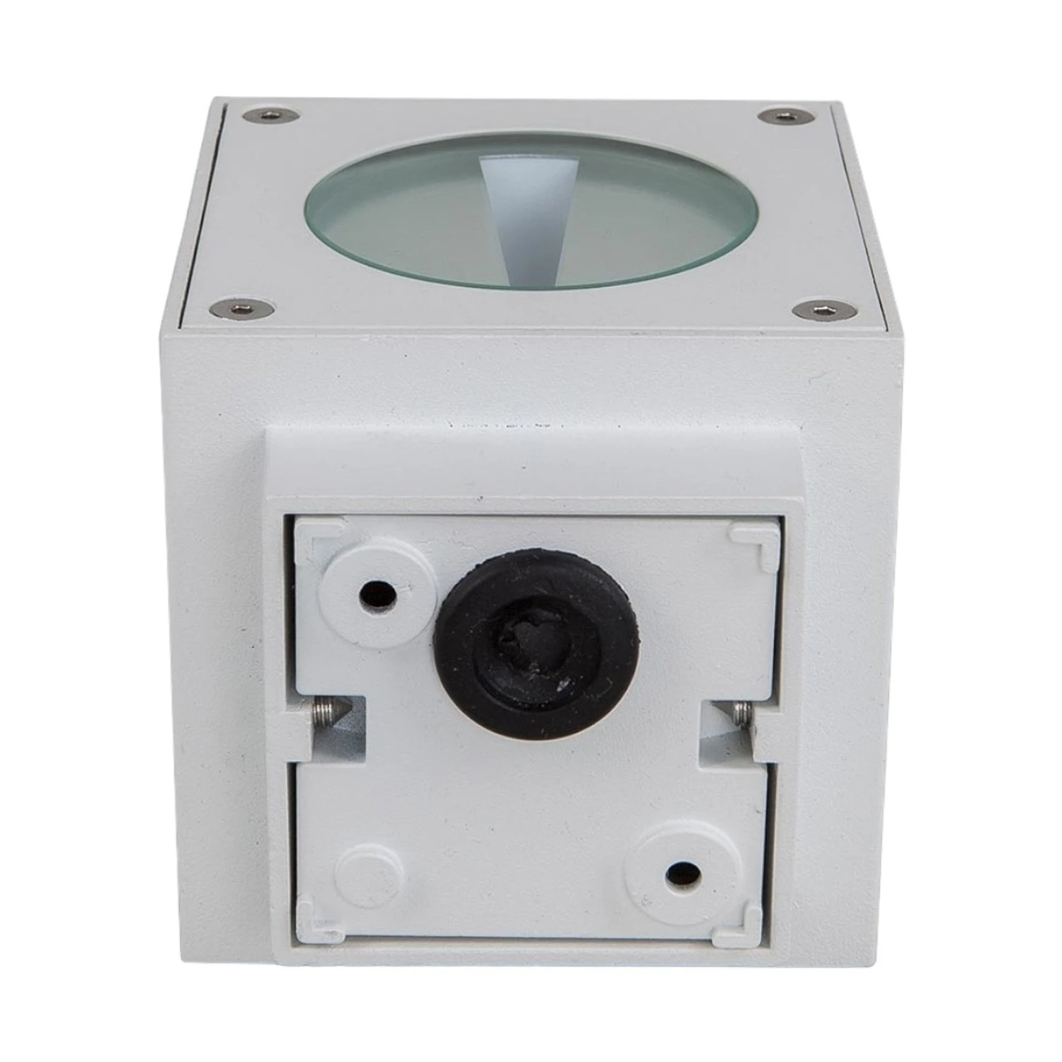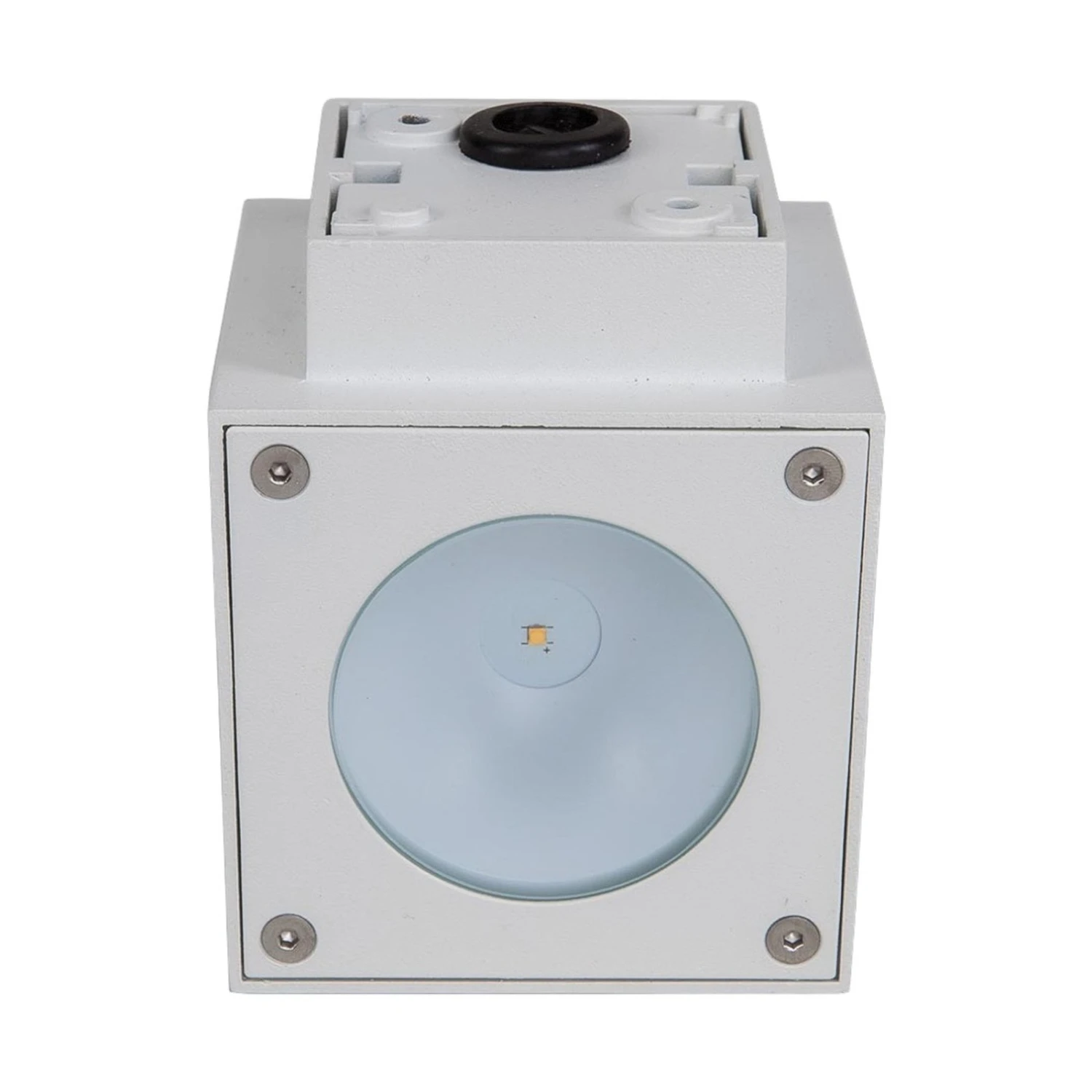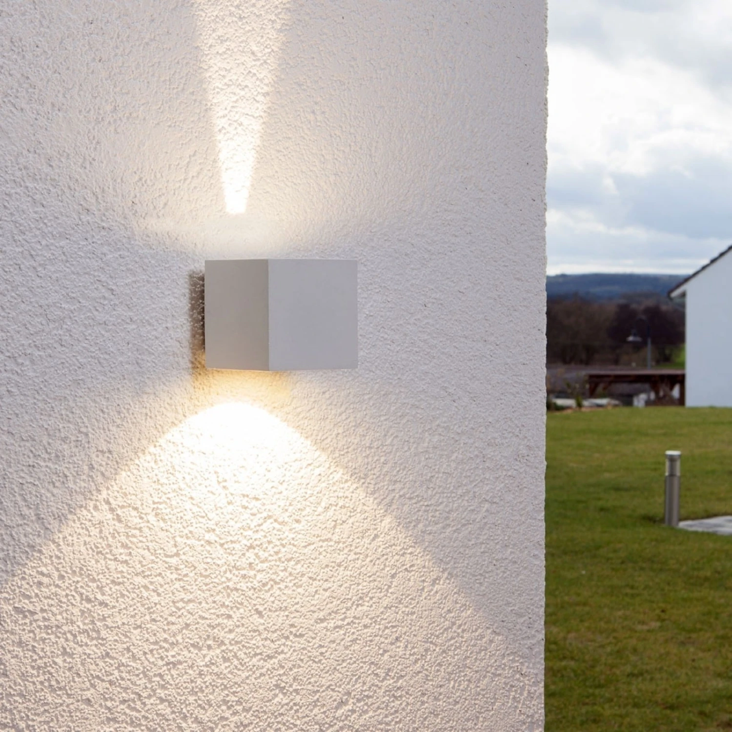 Weiß – wenn das nicht eine universal einsetzbare Farbe ist! Schaut man sich die LED-betriebene Außenwandleuchte genauer an, dann sieht man aber auch schnell, dass ebenso die Form dazu beiträgt, dass man Jarno absolut vielfältig verwenden kann. Ein Würfel – gibt es eine universalere geometrische Form? Nimmt man die Kugel bzw. den Kreis als Gestaltungselement hinzu, die ebenso populär sind, dann begreift man schnell, dass dies kaum der Fall ist. Mit seinen Kanten, die alle gleich lang sind, verbreitet er einen Ausdruck von Harmonie und passt sich gefällig in das bestehende Ambiente ein. Ein Blick sollte aber auch auf die Lichtwirkung dieser LED-Außenwandleuchte geworfen werden, weil man hier den Kontrast findet, den man optisch vergeblich sucht. Nach oben entweicht ein schmaler Streifen des warmweißen Lichts, nach unten scheint es breiter in einem leicht abgerundeten Winkel mit klarer Silhouette.