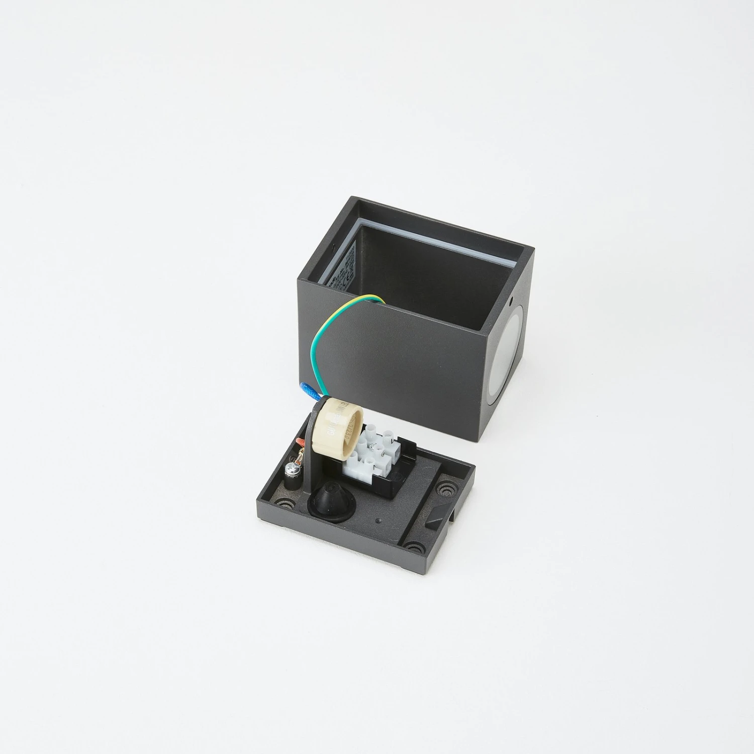 Xava hat einen eckigen Leuchtenkörper, der einem Würfel ähnlich sieht und durch die klare Formensprache ebenso modern wie zeitlos wirkt. Die Oberfläche des Gestells aus Aluminiumdruckguss ist mit einem grafitgrauen Finish versehen worden, das in der Tradition einer kühlen Elegant steht. Der Lichtaustritt erfolgt bei dieser Außenwandlampe nach unten. Eine schöne Ergänzung für viele Umgebungen.