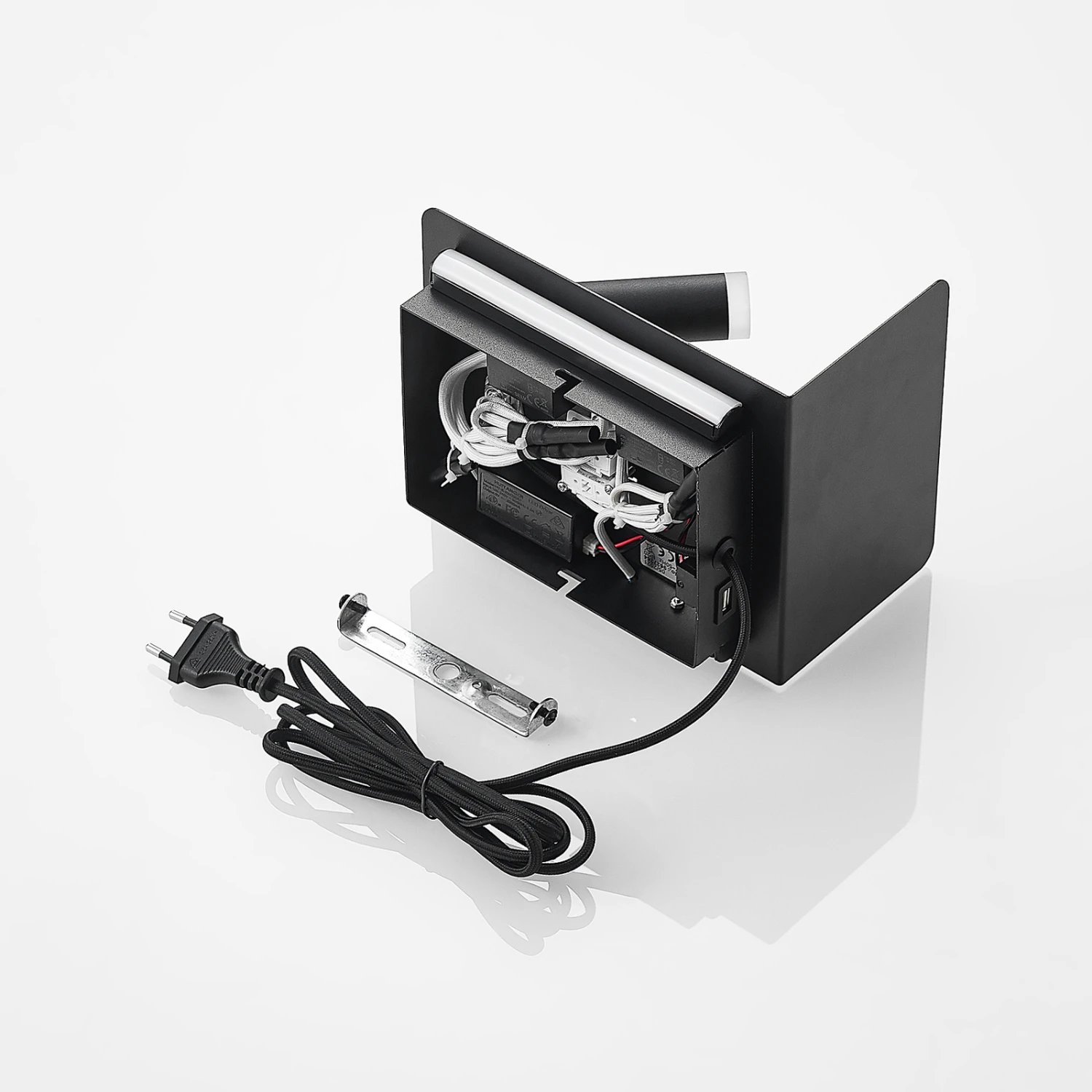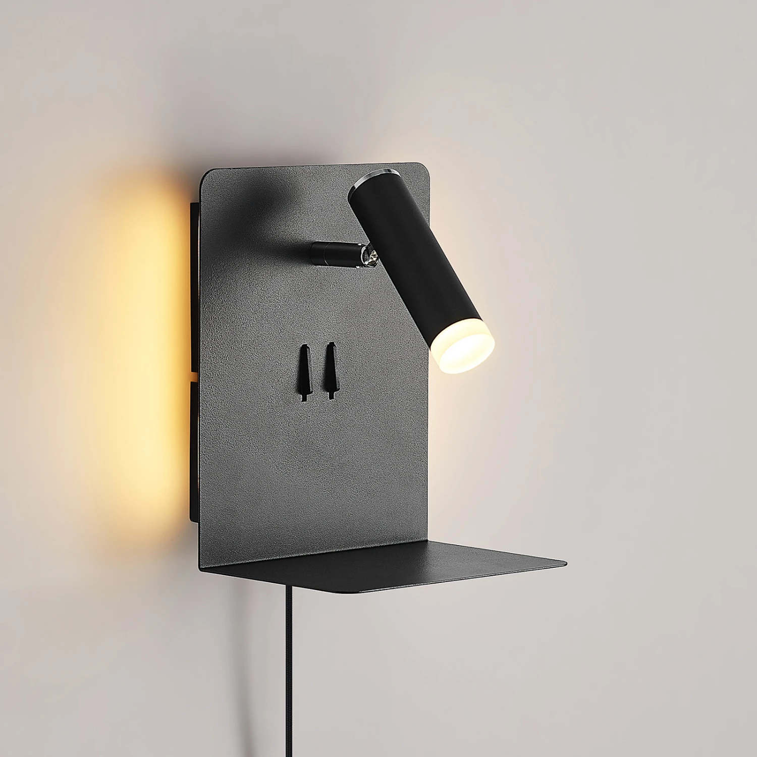 Praktische LED-Wandleuchte Zavi mit integrierten USB-Anschluss und einer Ablagefläche